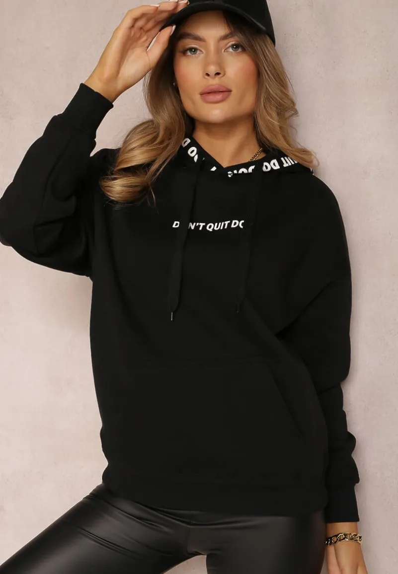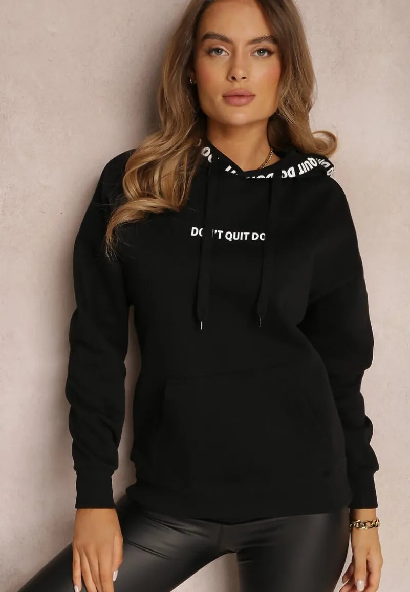 Bluza Vasilija dzianinowa, wykonana z bawełnianej tkaniny. Z kapturem, którego szerokość możesz swobodnie regulować. Wsuwana, wykończona od środka polarem. Dekorowana nadrukiem z przodu i wokół kaptura. Dół i rękawy zakończone ściągaczem. Z przodu szeroka, kangurowa kieszeń. Idealna w towarzystwie spodni dresowych i sneakersów na grubej podeszwie!