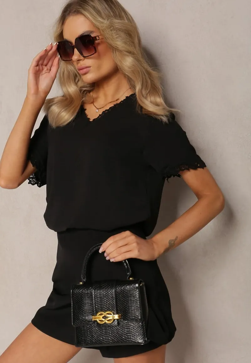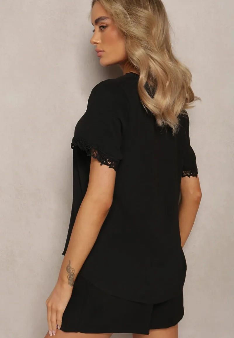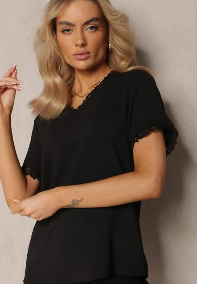 Bluzka Tirvana o luźnym fasonie z trójkątnym dekoltem. Krawędzie dekoltu i krótkich rękawów ozdobione siateczką. Stwórz z nią casual look – dodaj jeansy, mokasyny i shopperkę.