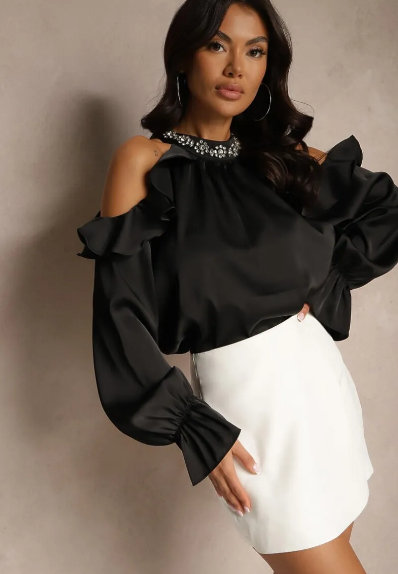 Bluzka Lavvesa z odkrytymi ramionami i falbankami oraz cyrkoniami to idealny wybór dla kobiet, które śledzą najnowsze trendy i pragną podkreślić swoją kobiecą sylwetkę. Jej luźny fason na guzik z długimi rękawami subtelnie eksponuje ramiona, a delikatne falbanki dodają romantycznego uroku. Świetnie sprawdzi się zarówno na codzienne wyjścia z koleżankami, zestawiona z jeansami i botkami, jak i na bardziej formalne okazje w duecie ze spódnicą ołówkową i eleganckimi szpilkami.