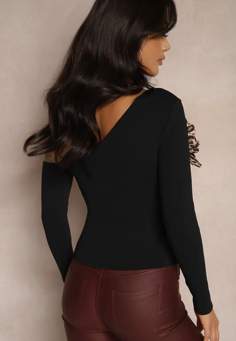 Bluzka Noradi to kwintesencja kobiecej elegancji z nutą nowoczesności. Asymetryczny krój z długim rękawem i oryginalnym kwiatem 3D przy dekolcie to prawdziwy must-have tego sezonu dla fashionistek. Wykonana z wiskozą. Możesz ją nosić do pracy, zestawiając z ołówkową spódnicą i marynarką, lub ubrać na wieczorne wyjście, łącząc z dopasowanymi szortami i wysokimi obcasami.