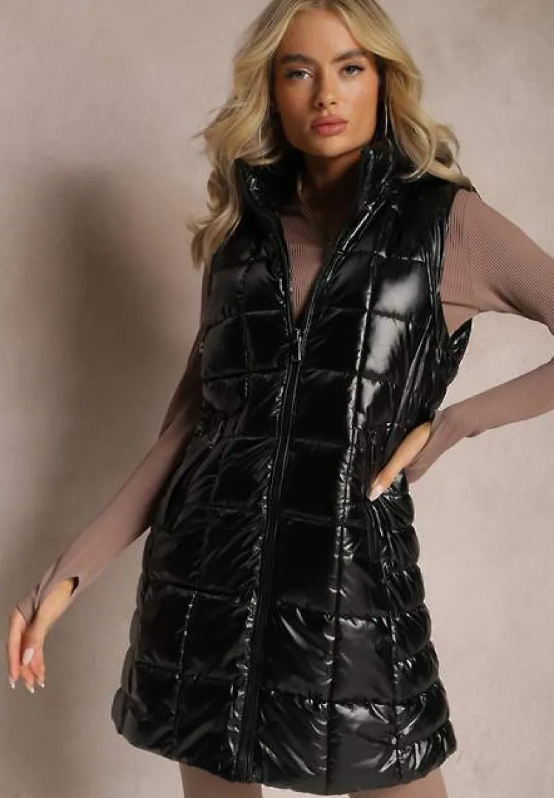 Kamizelka Suymea to klasyczny pikowany długi fason urozmaicony o lakierowane wykończenie materiału. Bezrękawnik posiada zasuwane kieszonki i kaptur ze sznurkami, który można odpiąć.