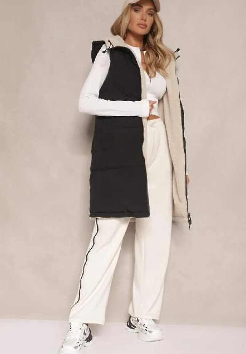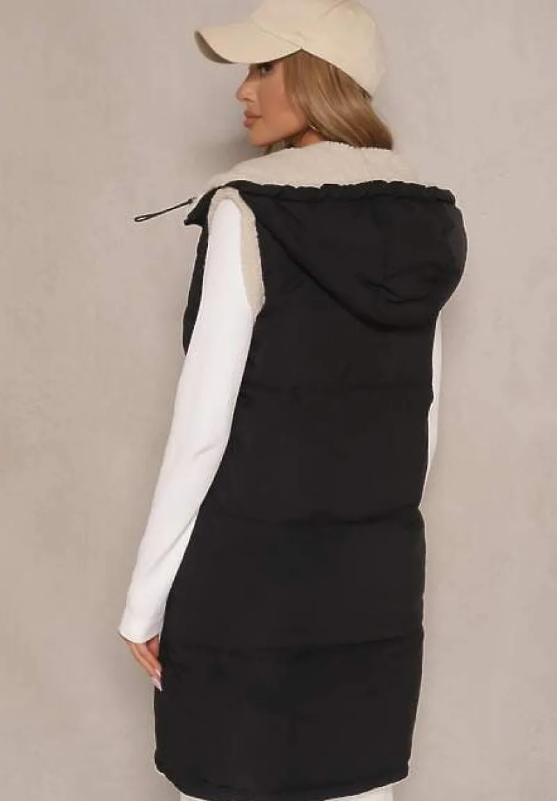Kamizelka Lertitana to kwintesencja uniwersalności w kobiecej garderobie, idealna na chłodniejsze dni. Dwustronne wykończenie łączące pikowane przeszycia i barankowe futerko gwarantuje zarówno ciepło, jak i niebanalny wygląd w zależności od potrzeb i upodobań. Praktyczny nieodpinany kaptur doda charakteru i funkcjonalności, a dobrze skrojony fason podkreśli Twoją sylwetkę. Stylizując ją z jeansami i sneakersami, zyskasz outfit idealny na weekendowe wyprawy, a w połączeniu z eleganckimi botkami i plisowaną spódnicą stworzysz zestaw zgodny z najnowszymi trendami. Kamizelka posiada kieszenie.