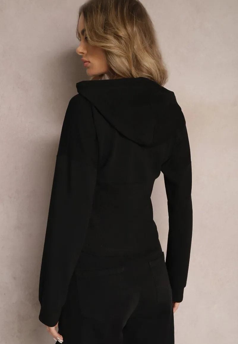 Bluza Kindra o gorsetowym fasonie wykonana z bawełnianej tkaniny. Wygodnie zakładana przez głowę, z kapturem. Długie rękawy zakończone ściągaczem.