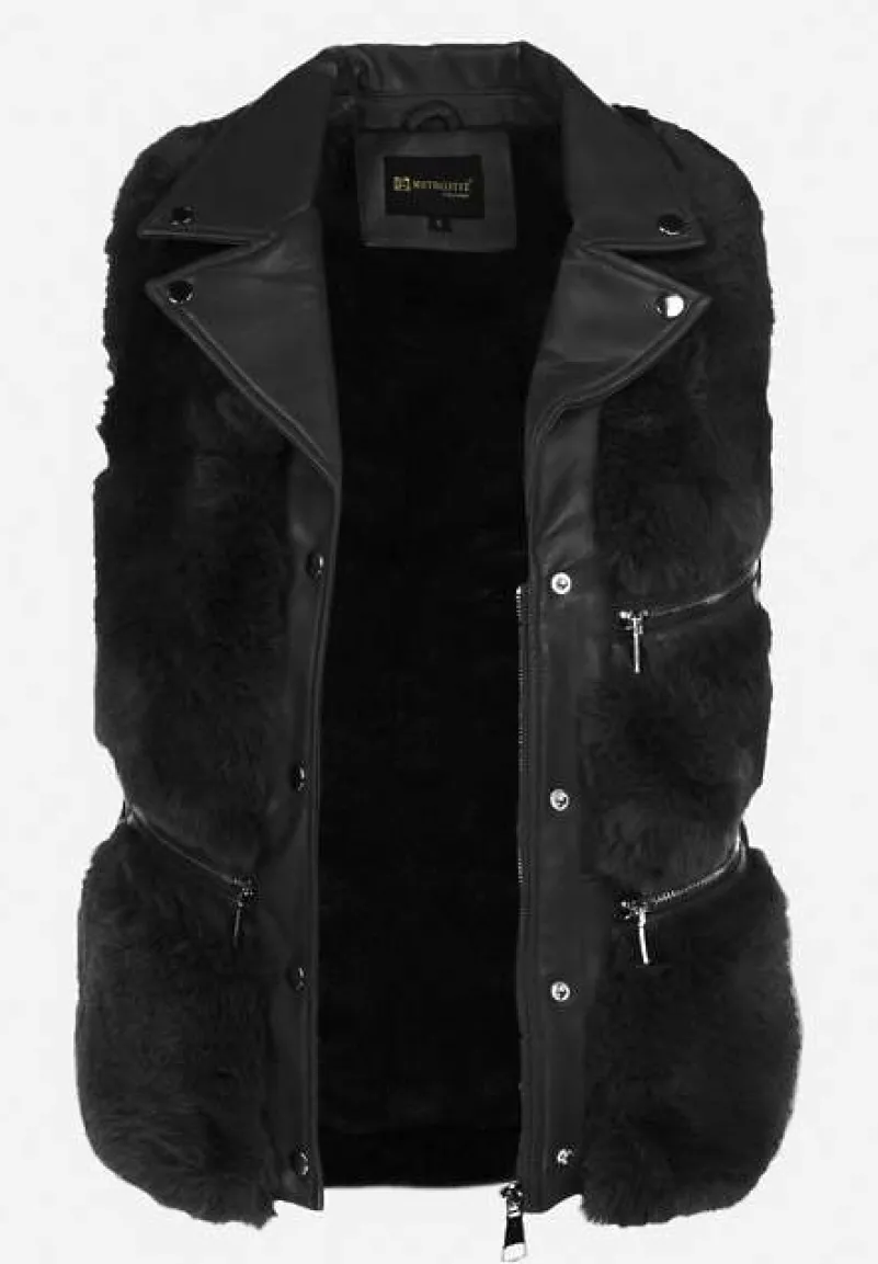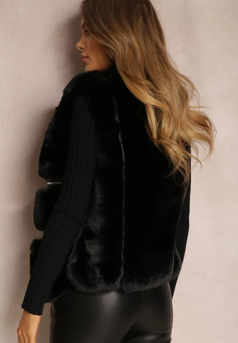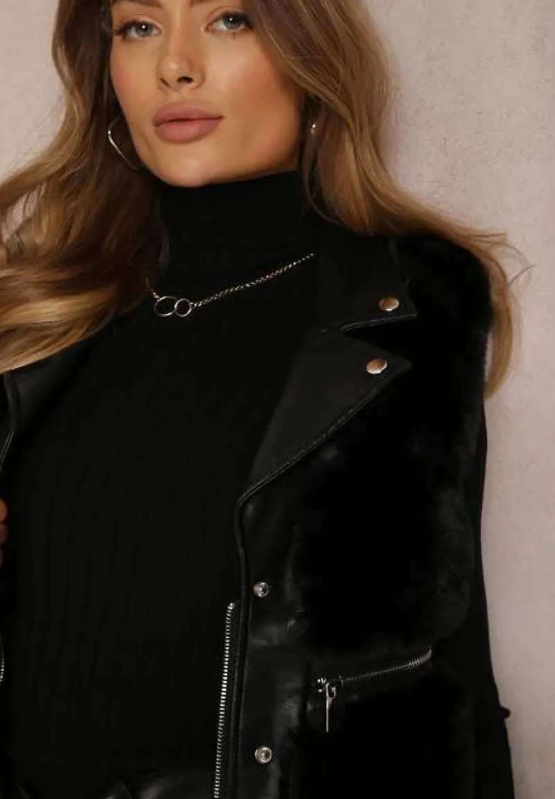 Kamizelka Katonice wykonana z połączenia miękkiego futerka i ekoskóry. Zapinana na napy. Imitacja kieszonki na piersi, na biodrach zasuwane kieszenie. Futerko jest sztuczne. Stworzysz z nią stylizację rock i glamour!