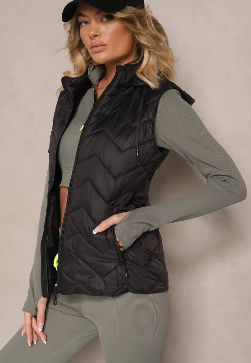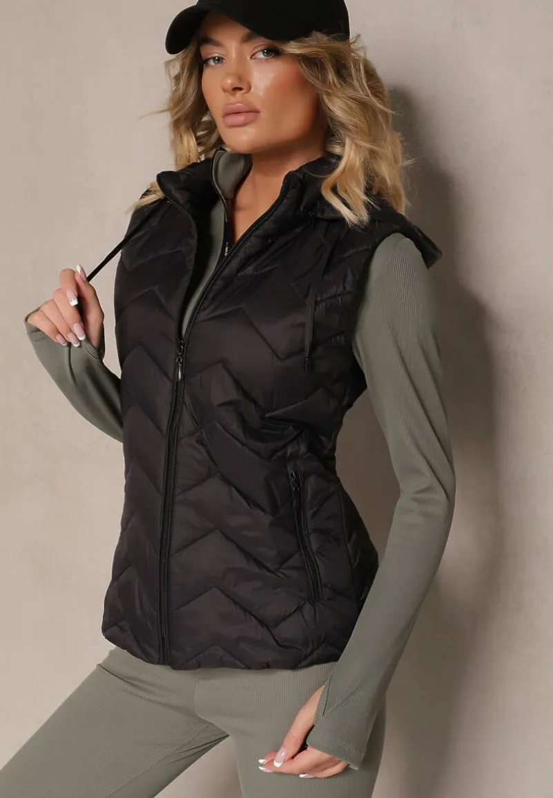 Kamizelka Saritha z odpinanym kapturem na suwak to must-have dla kobiet, które śledzą modowe nowinki i lubią wyróżniać się na co dzień. Jej pikowany wzór i doskonały krój z zasuwanymi kieszeniami podkreślają talię, nadając sylwetce elegancki i nowoczesny wygląd. Idealna na spacer po mieście z ulubionymi jeansami i botkami. Kamizelka świetnie sprawdzi się w chłodniejsze dni, zapewniając modny look.