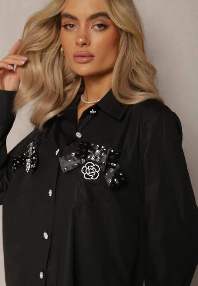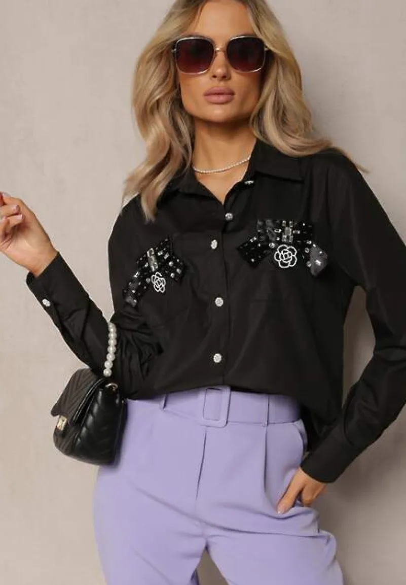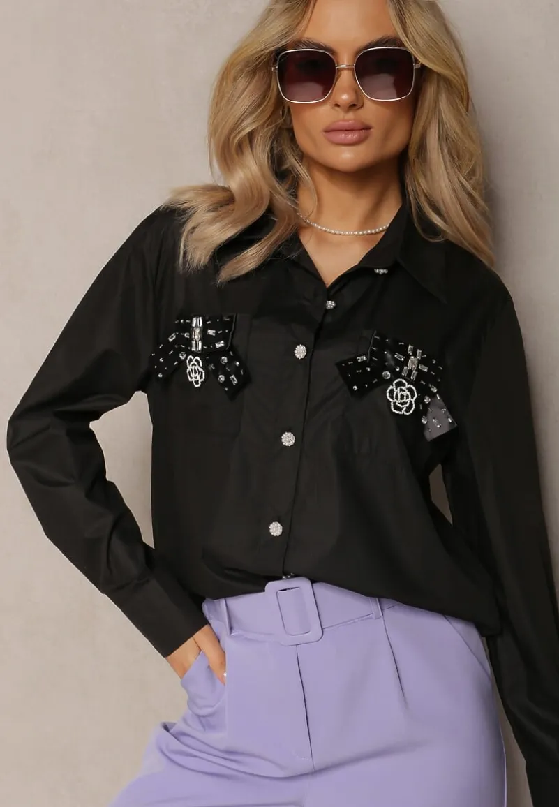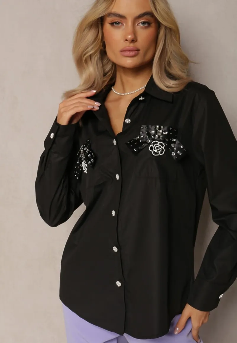 Stylowa koszula Herlla, która łączy w sobie komfort i elegancję. To klasyczny model z długimi rękawami i ozdobnymi kieszeniami z kryształkami i cyrkoniami. Doskonała dla kobiety ceniącej unikatowe detale.