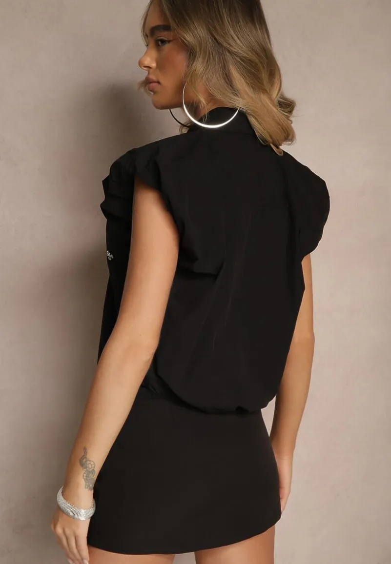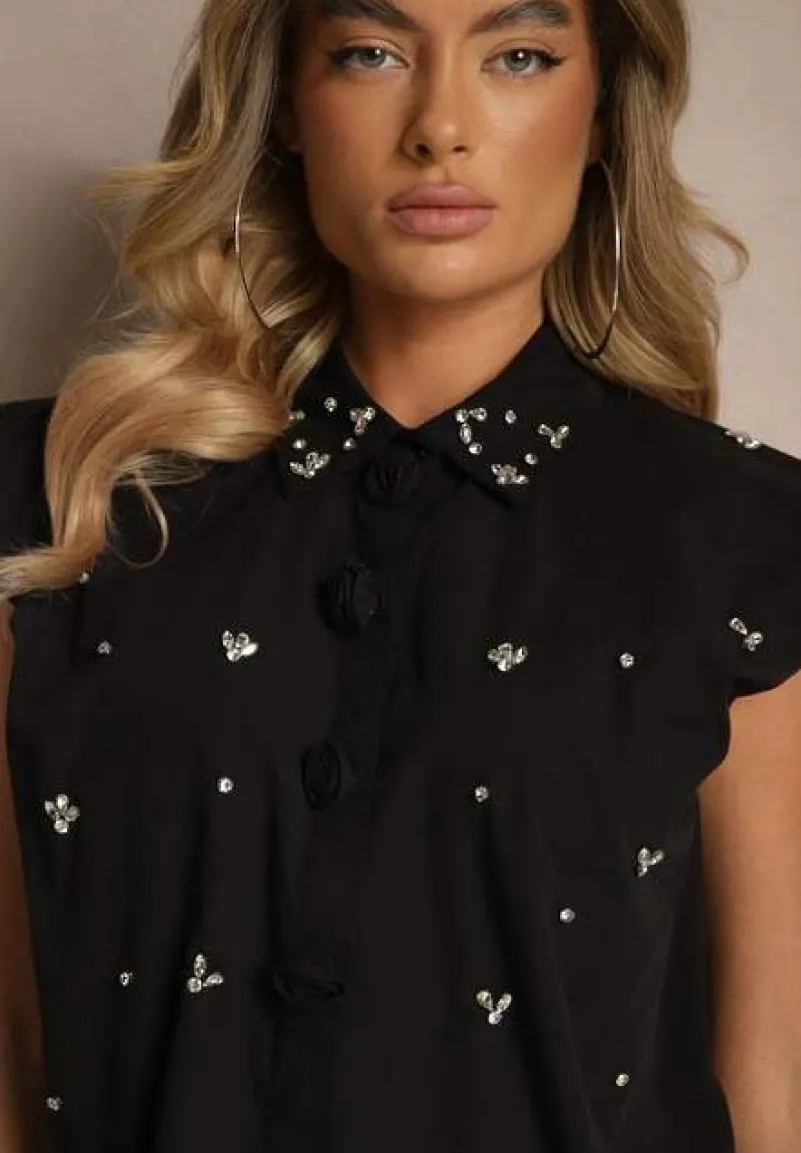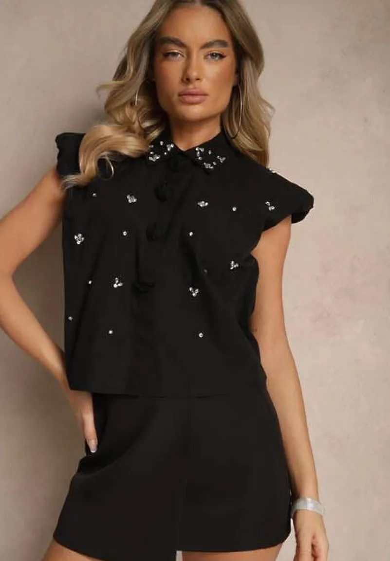 Niezwykła koszula z bawełny Melseki to odważne połączenie klasyki z niebanalnym szykiem. Brak rękawów oraz dekoracyjne cyrkonie dodają jej nowoczesnego charakteru, zachowując jednocześnie elegancki fason. Idealna na wieczorne wyjścia, gdy chcesz błyszczeć w towarzystwie, lub jako element codziennej stylizacji z jeansami i mokasynami. Model zapinany na guziczki.