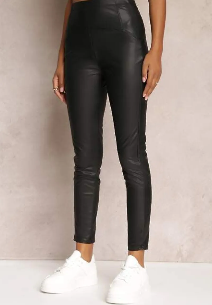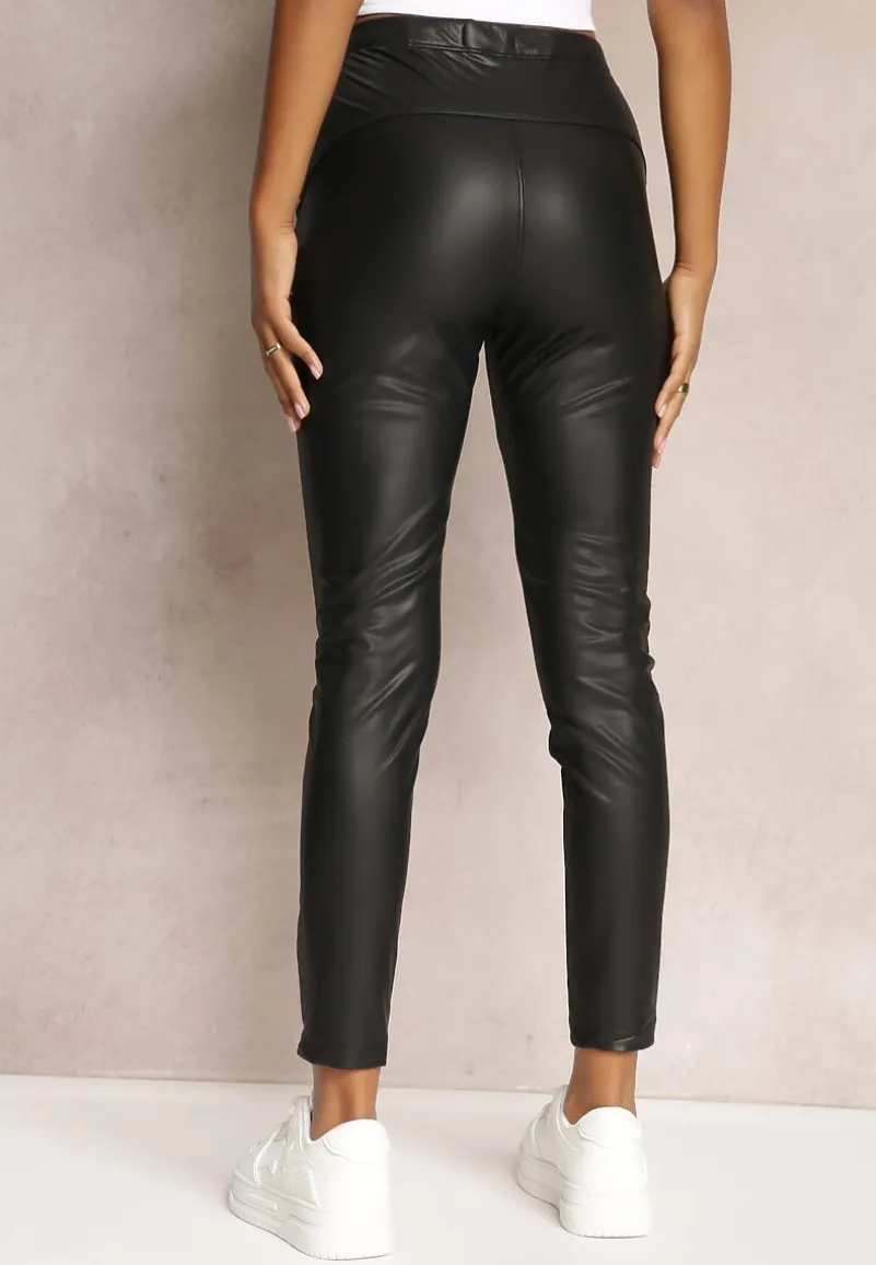 Legginsy Wasica wykonane z imitacji skóry o gładkim wykończeniu. Wysoki stan. Długie, dopasowane nogawki.