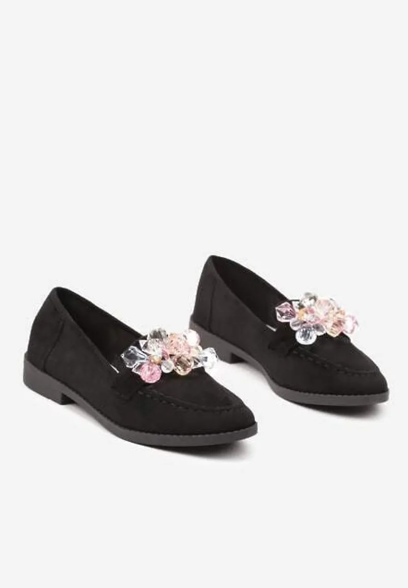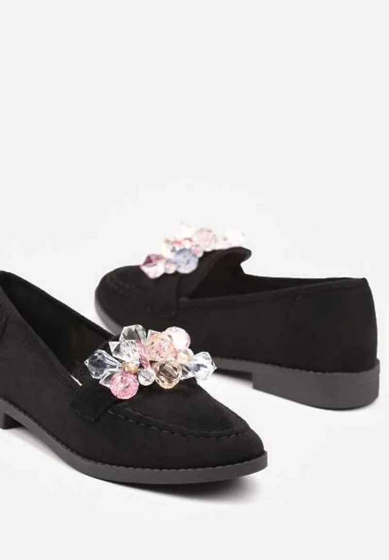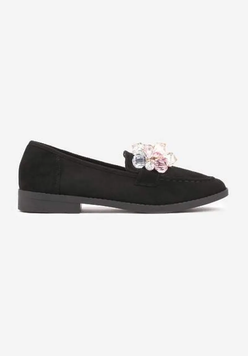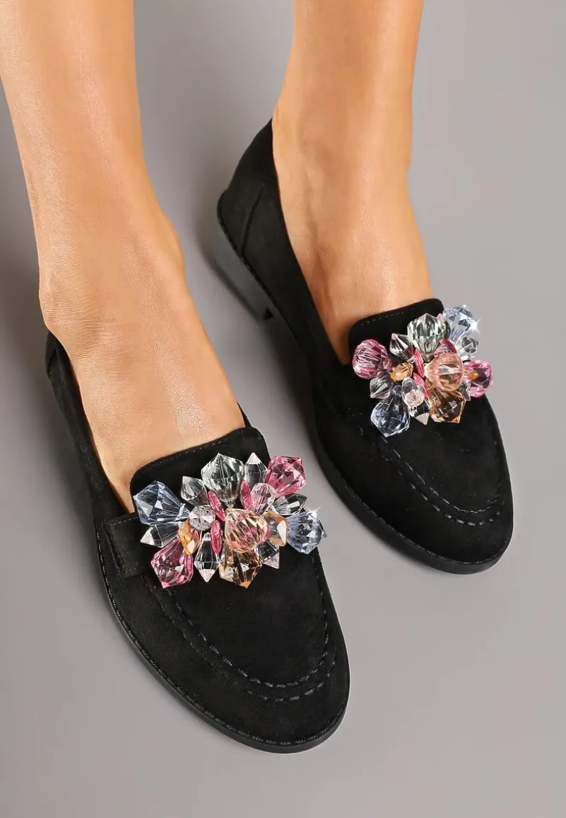 Mokasyny Zaliora z imitacji zamszu z biżuteryjną aplikacją to doskonały wybór dla kobiet ceniących elegancję i modowe akcenty w swojej garderobie. Dzięki płaskiemu obcasowi zapewniają komfort noszenia, a biżuteryjne zdobienia dodają im wyjątkowego charakteru, który przyciąga spojrzenia. Zaokrąglony nosek podkreśla ich klasyczny styl, sprawiając, że będą doskonałym uzupełnieniem zarówno casualowej stylizacji z jeansami i koszulą, jak i eleganckiego looku z ołówkową sukienką i marynarką. Musisz je mieć!