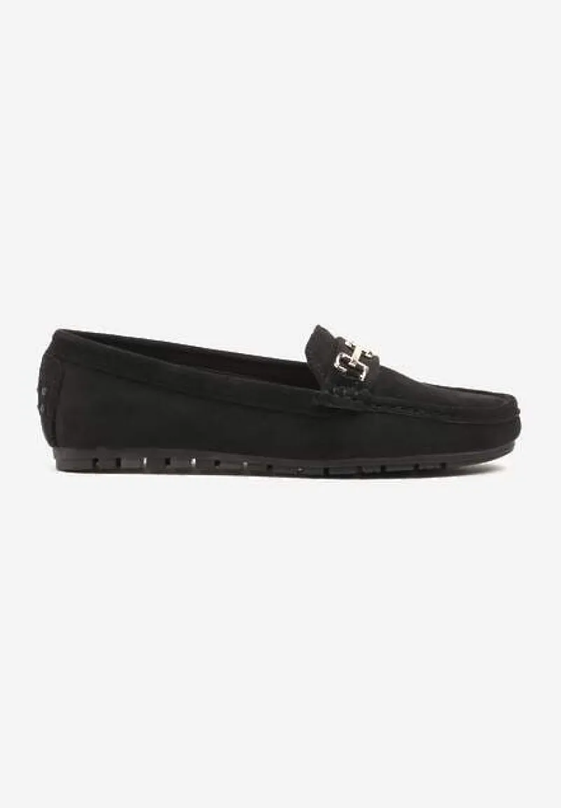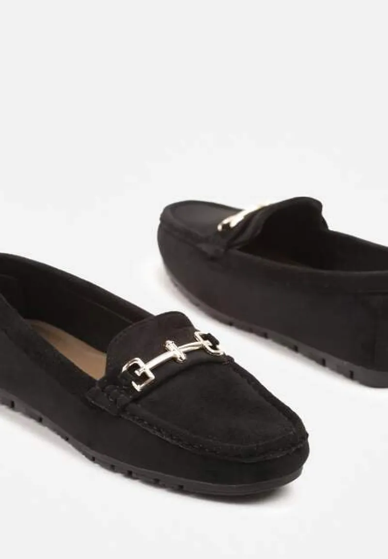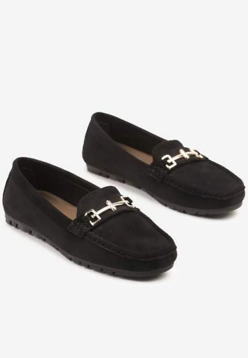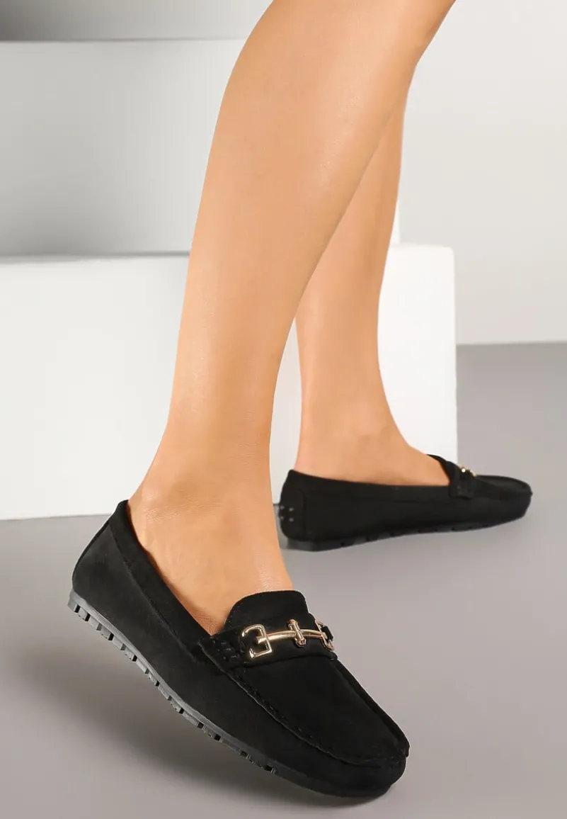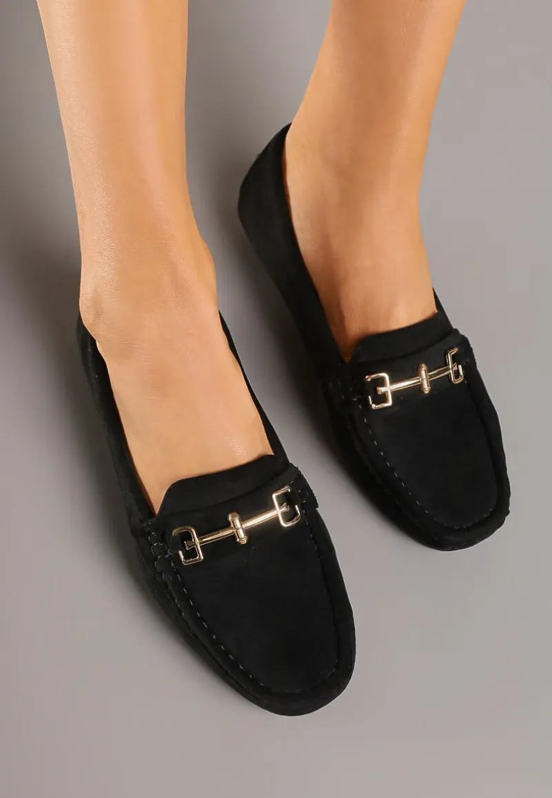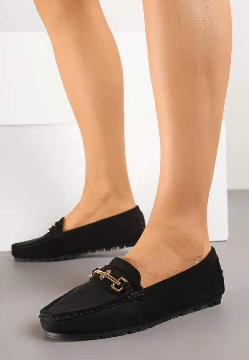 Mokasyny z imitacji zamszu Sovtewi zachwycają klasycznym designem i nowoczesnym stylem. Klasyczny fason z zaokrąglonym noskiem i ozdobną metaliczną aplikacją to kwintesencja ponadczasowej elegancji. Idealnie sprawdzą się na dzień w biurze w połączeniu z eleganckimi spodniami i dopasowaną marynarką. Na wieczorne wyjście zestaw je z sukienką midi i subtelną biżuterią, aby dodać szyku formalnej stylizacji.
