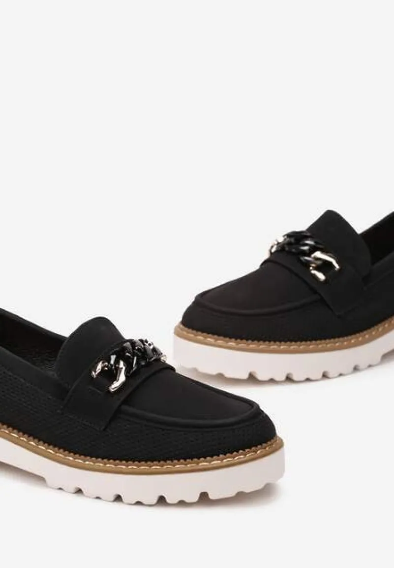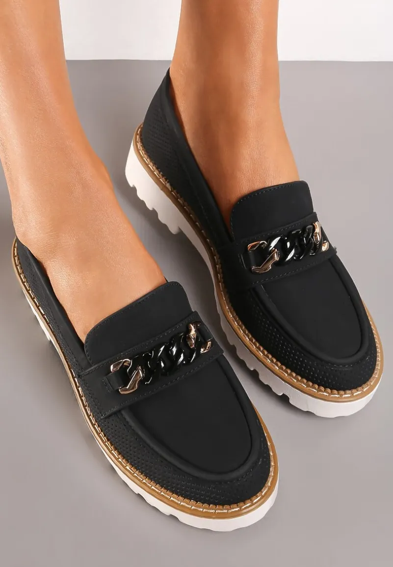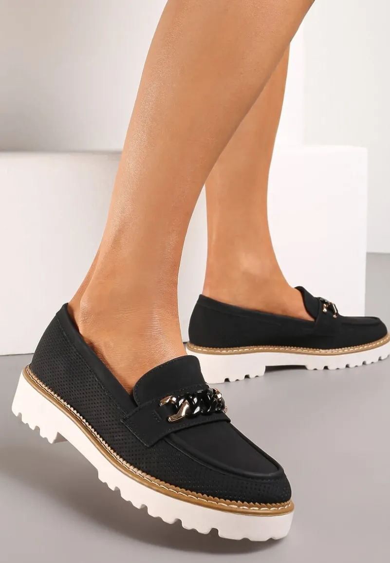 Mokasyny Ferinla na grubej podeszwie. Z przodu udekorowane łańcuchem. To obuwie idealne na wiele okazji, które pięknie ozdobi Twoje stylizacje.