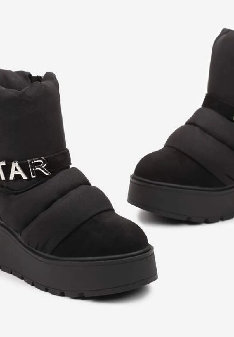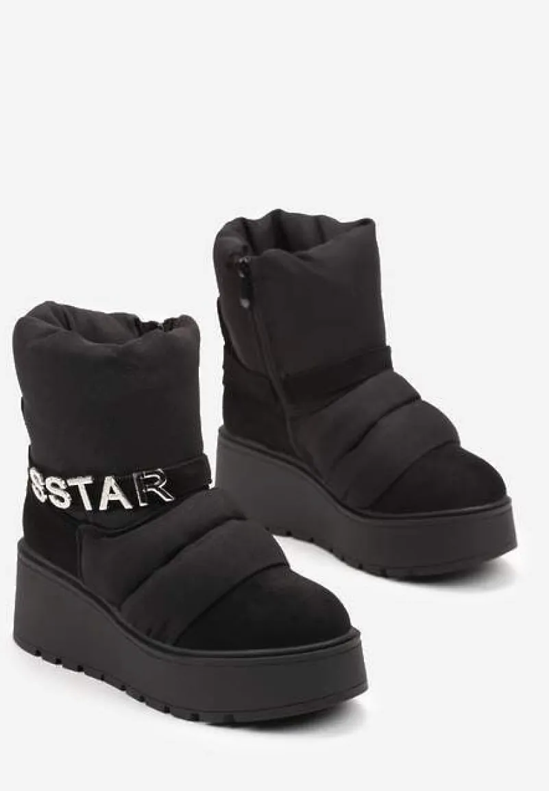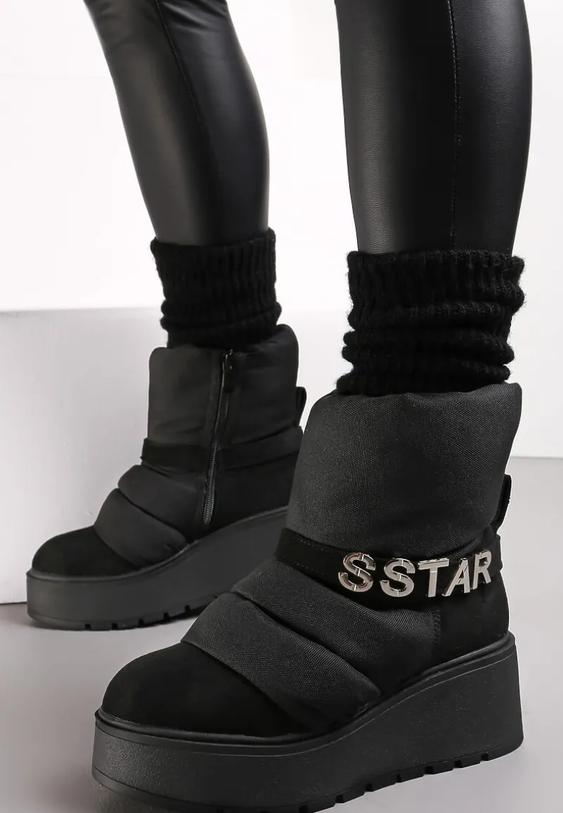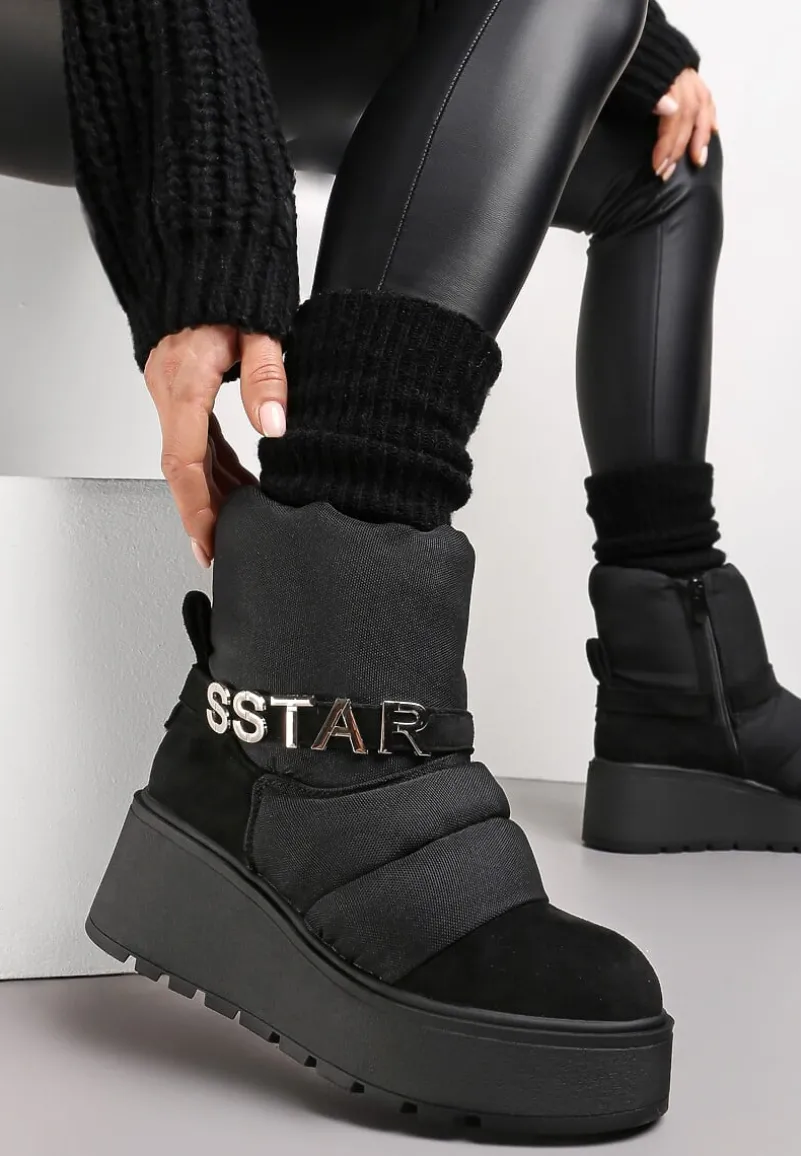 Śniegowce Sarva — posiadają pikowaną cholewkę z materiału tekstylnego za kostkę, są ocieplane kocem obuwniczym.