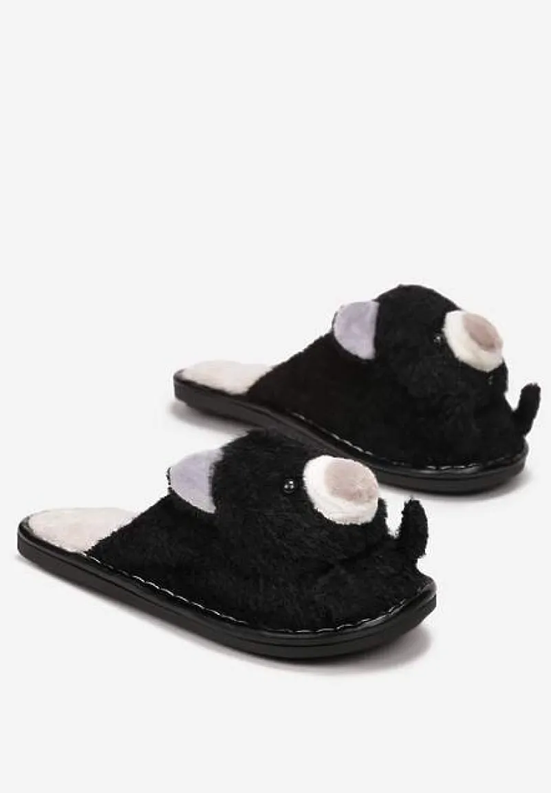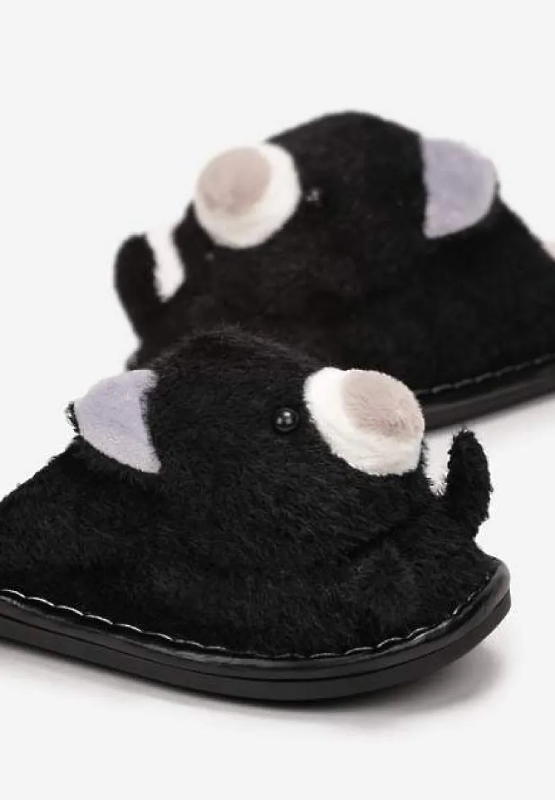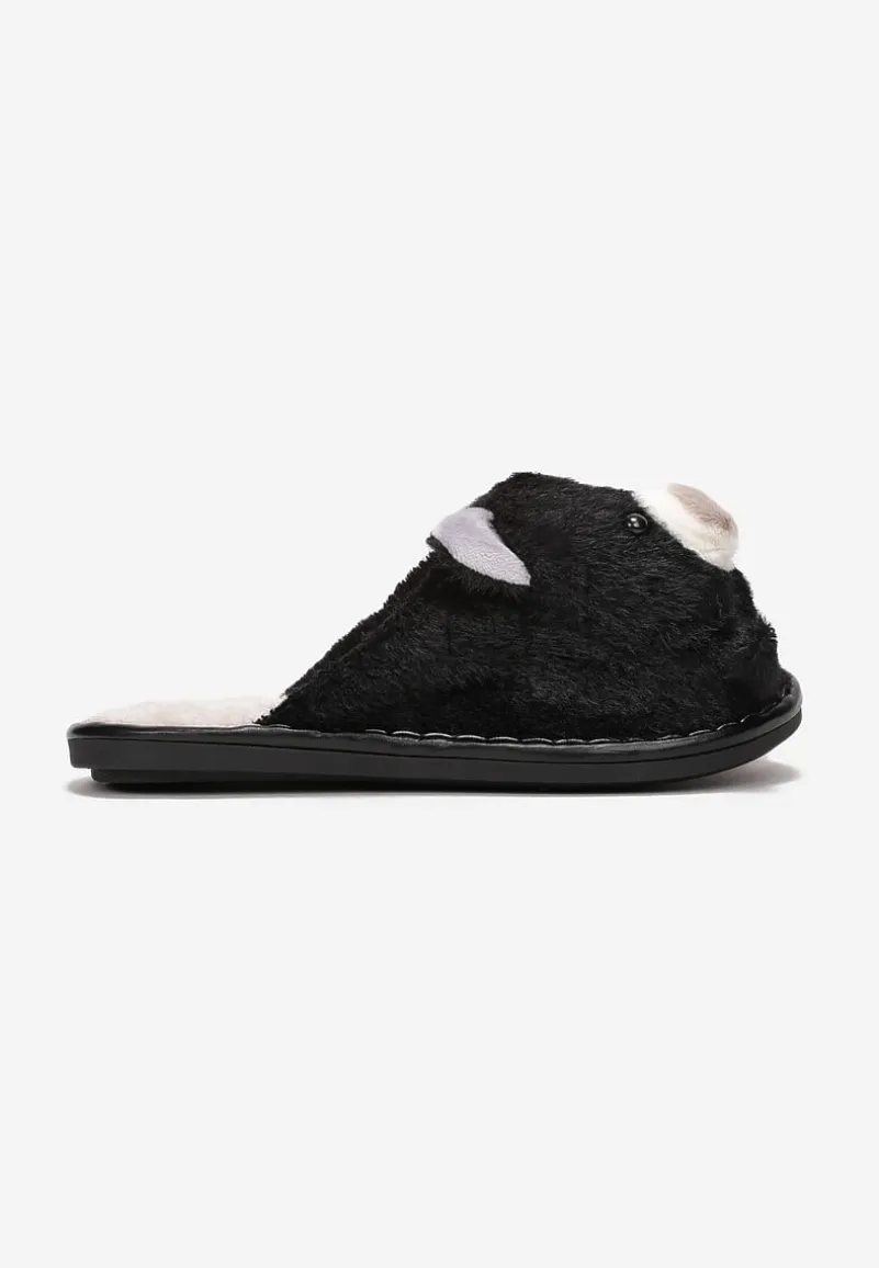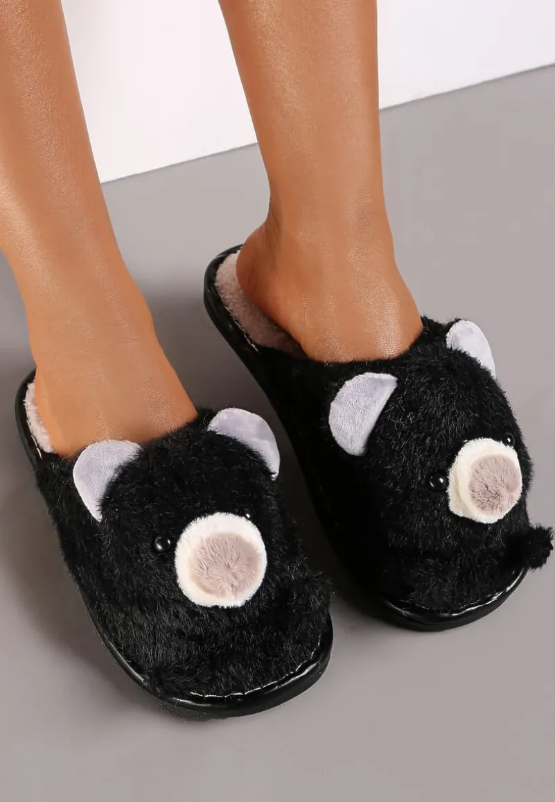 Kapcie Phisi wykonane z miękkiego, sztucznego futerka, wsuwane. Na zabudowanym nosku aplikacja w kształcie uroczego pluszowego misia.