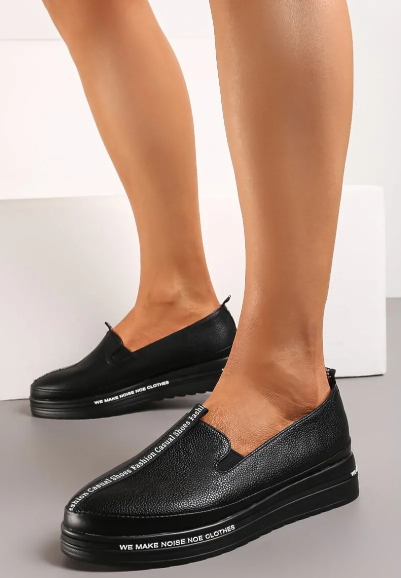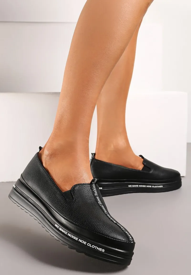 Półbuty na Niskiej Platformie z Napisem Rualla to must-have dla każdej modnej kobiety. Zgrabne, subtelnie zaokrąglone noski pasują do różnorodnych stylizacji, a napis doda charakteru Twoim outfitom. Posiadają wstawki z elastycznego materiału. Bez problemu wpasujesz je w codzienny look, zestawiając z mom jeans i oversize’owym swetrem, jak i elegancko, z prostą sukienką i minimalistycznymi dodatkami.