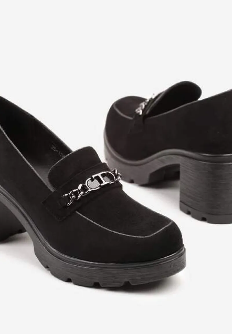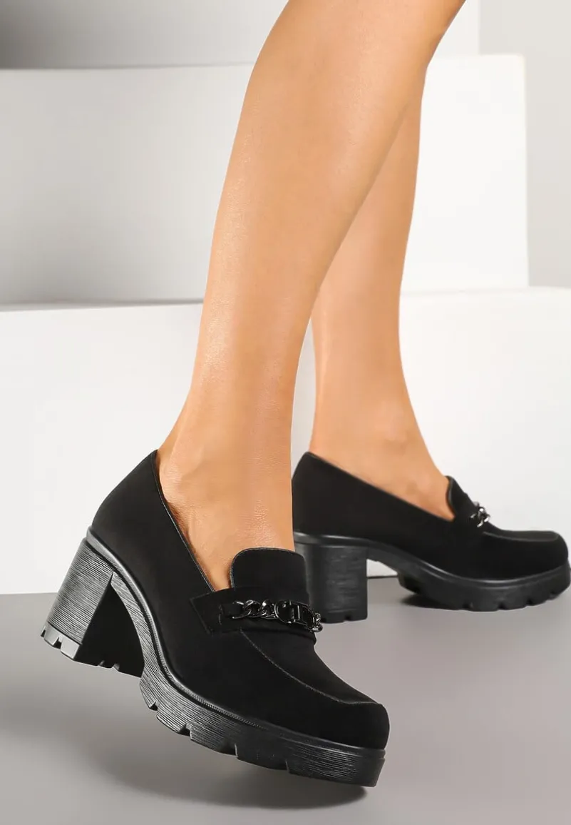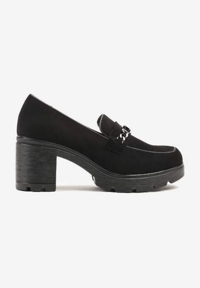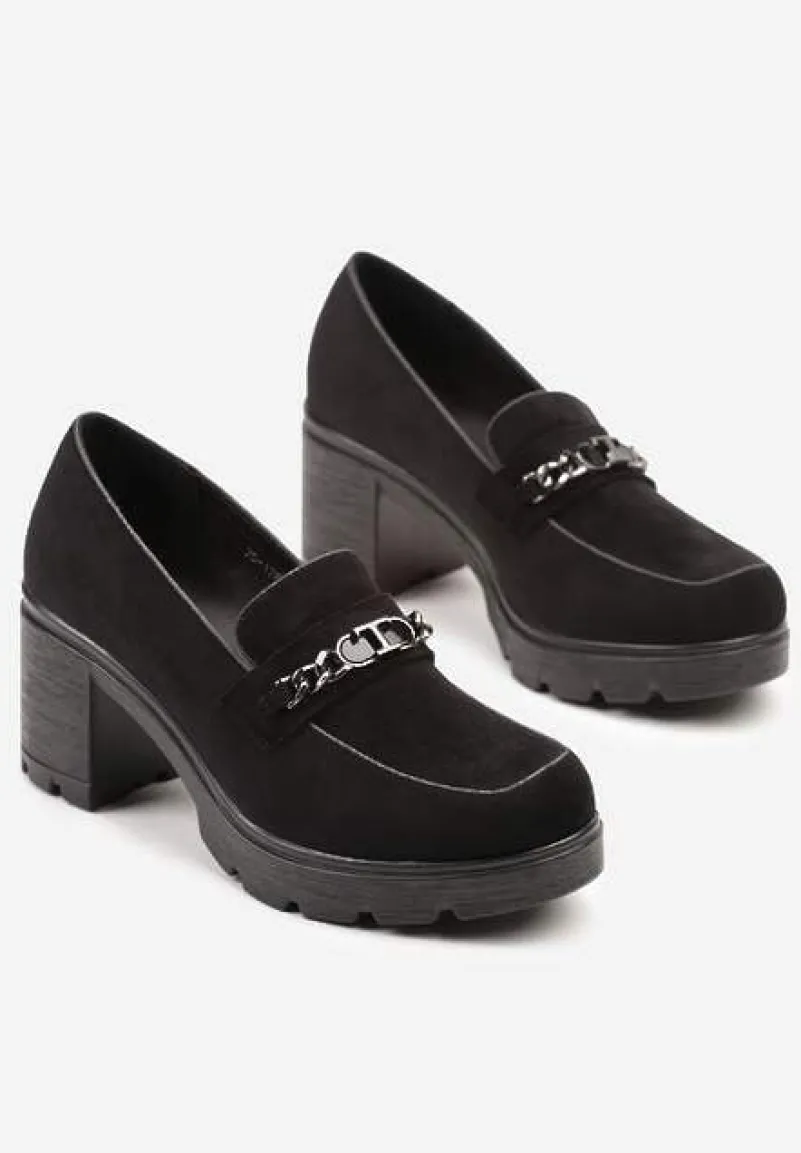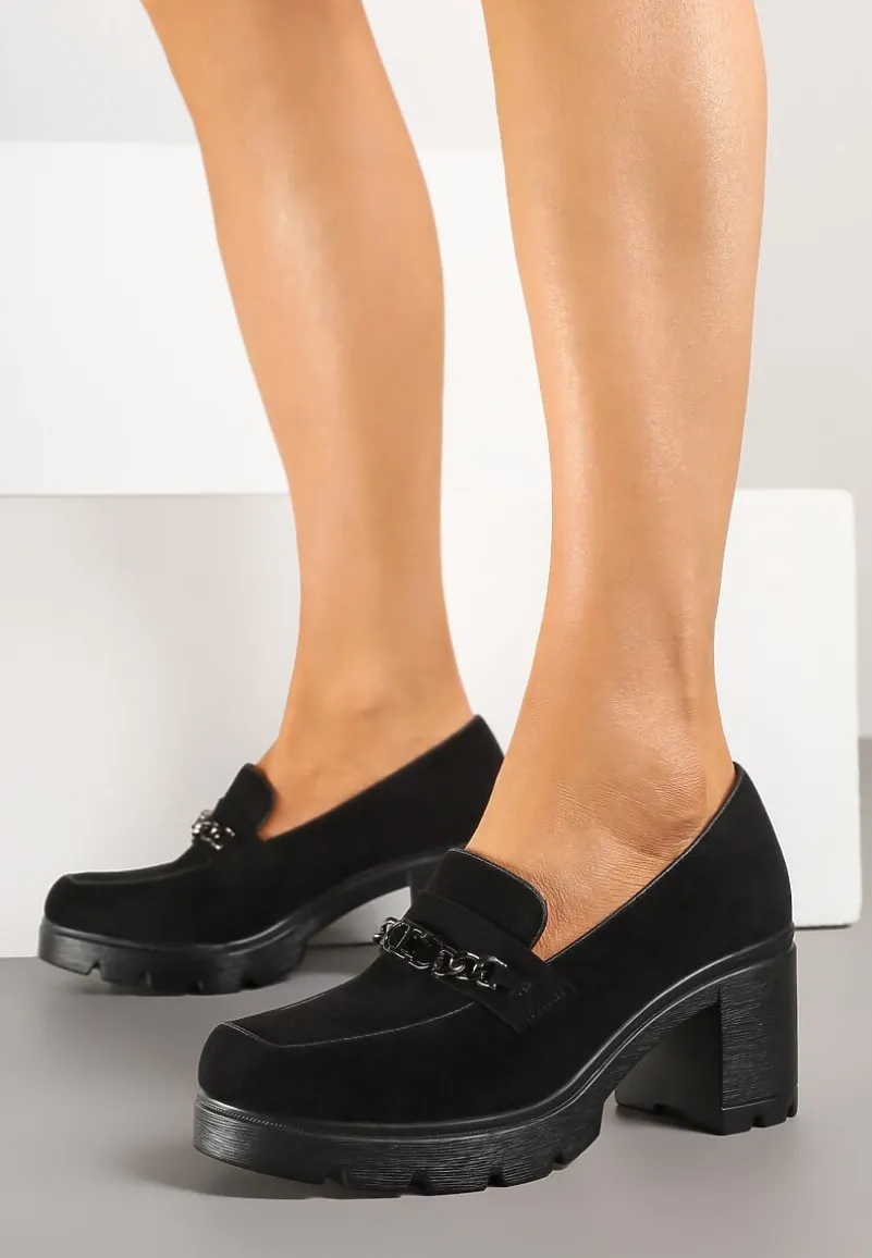 Półbuty na Słupku ze Skórzaną Wkładką Ozdobione Łańcuchem Tuella to must-have w garderobie każdej fashionistki! Ich obcas w kształcie słupka zapewnia stabilność, a atrakcyjny łańcuch dodaje charakteru każdej stylizacji. Idealne na codzienne wyjścia, świetnie komponują się z jeansami i oversize’ową bluzą, a na specjalne okazje połącz je z midi sukienką i minimalistyczną torebką.