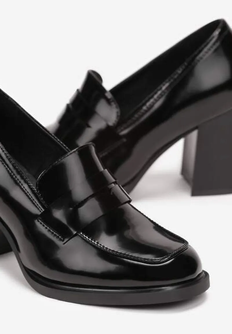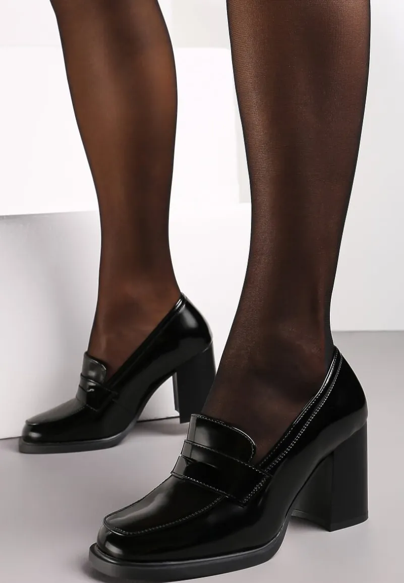Szukasz idealnych butów na co dzień? Ten model jest dla Ciebie! Mokasyny na obcasie z lakierowanym wykończeniem sprawdzą się doskonale w eleganckich setach.
