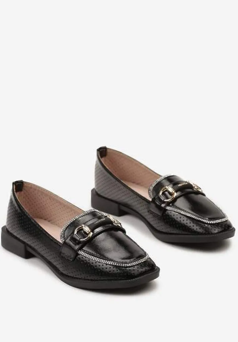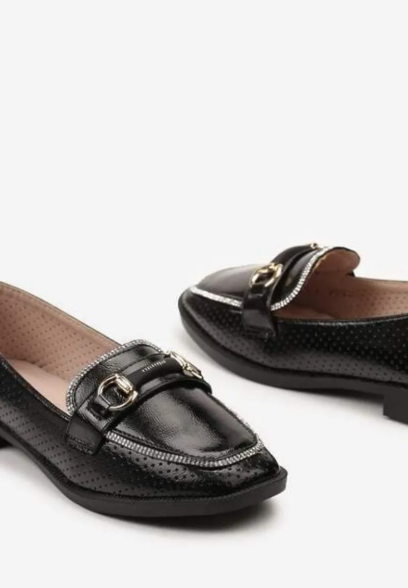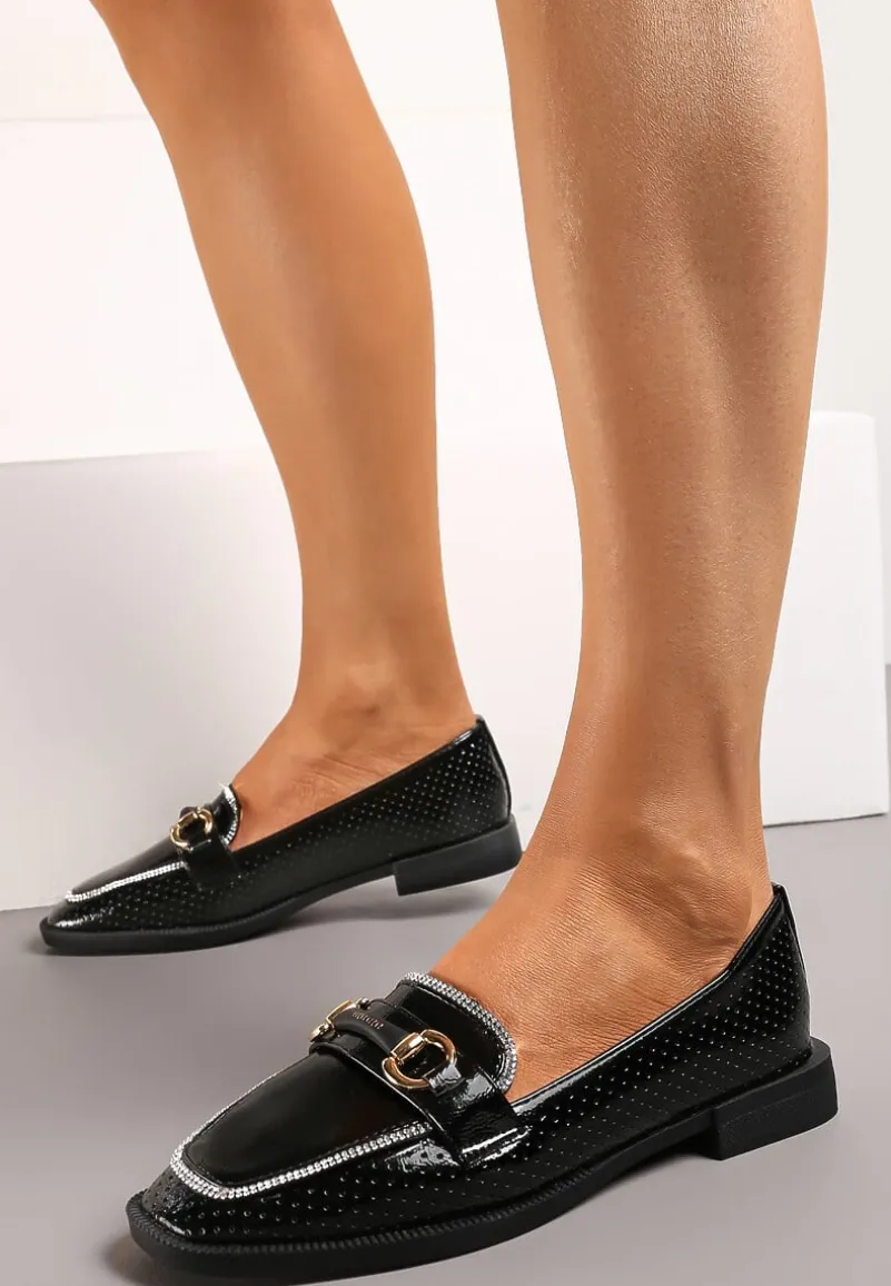 Odkryj elegancję z nowymi półbutami w stylu loafersów, które idealnie uzupełnią zarówno codzienne, jak i eleganckie stylizacje. Płaska podeszwa zapewnia stabilność na każdym kroku. Matowy materiał o delikatnej fakturze współgra z subtelnym, okrągłym noskiem, zapewniając uniwersalny wygląd. Uwagę przyciąga gustowna klamra oraz delikatna perforacja zdobiona drobnymi cyrkoniami, dodająca blasku nawet najprostszym zestawom. Na co dzień załóż je do lnianych spodni i bawełnianej bluzki, tworząc luźny, ale wyrafinowany look. Na wieczorne wyjście skomponuj je z elegancką spódniczką i jedwabną koszulą.