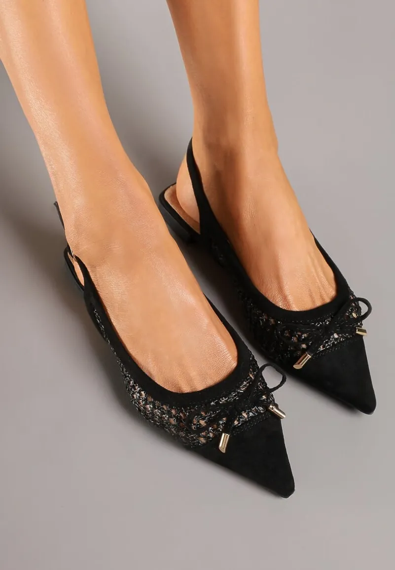 Sandały Balerinki z Plecionki ze Szpiczastym Noskiem i Kokardką Leawenne to esencja stylu i elegancji, idealna dla każdej kobiety, która pragnie być na bieżąco z najnowszymi trendami. Delikatny, pleciony wzór w połączeniu z subtelną kokardką nadaje im lekkości, a płaski obcas zapewnia wygodę i komfort noszenia. Szpiczasty nosek i klasyczne zapięcie na klamerkę przy pasku to detale, które doskonale skomponują się zarówno z letnią sukienką i kapeluszem na co dzień, jak i z eleganckim kombinezonem i kopertówką na wieczorne wyjście. Musisz je mieć!