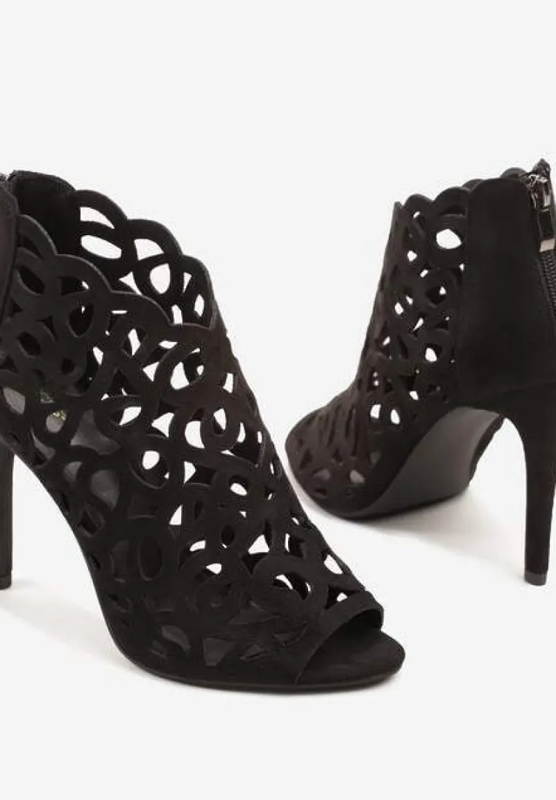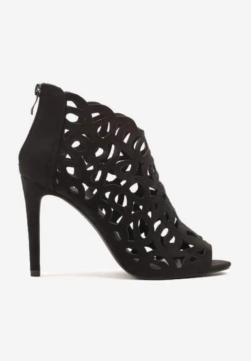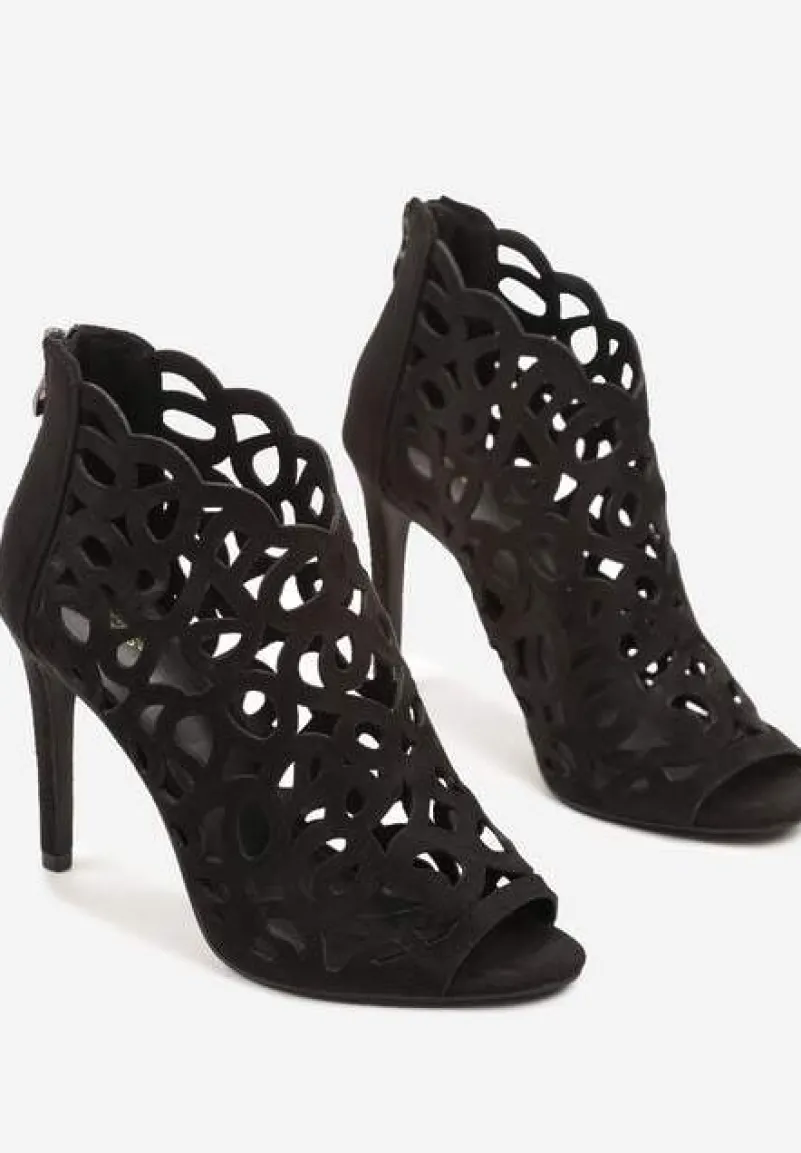 Czarne Sandały Botki Vices na Szpilce z Ażurową Cholewką Natilora