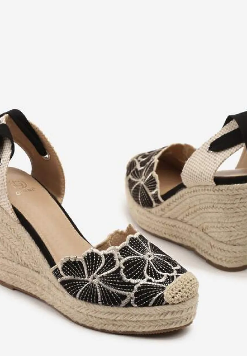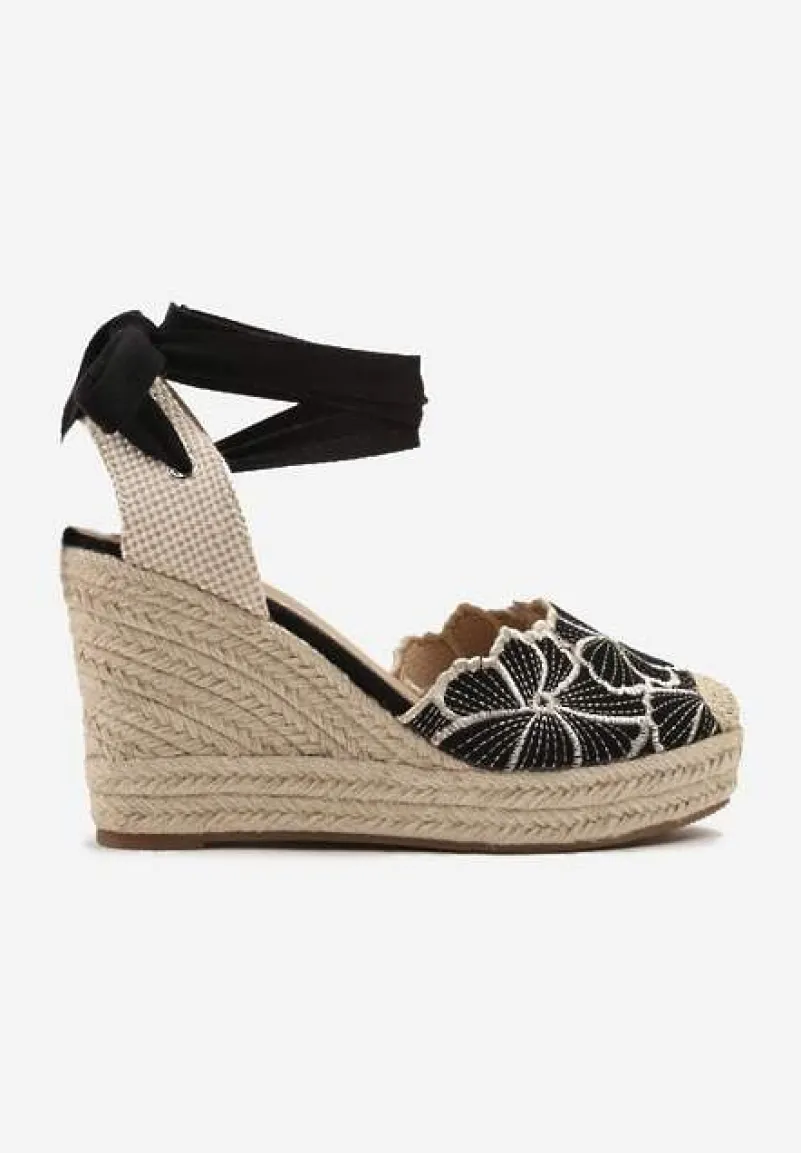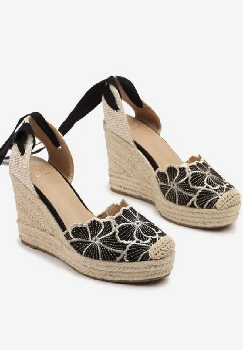 Sandały na Koturnie z Plecionki z Haftem i Ozdobnym Wiązaniem Mevolina to idealny wybór dla każdej modowej entuzjastki! Osadzone na stylowym koturnie, zapewniają komfort noszenia i stabilność. Haftowane detale i ozdobne wiązanie przy kostce nadają im uroku i sprawiają, że będą doskonałym dopełnieniem zarówno casualowych, jak i eleganckich outfitów — wystylizuj je z letnią sukienką maxi i torebką shopperką na spacer lub połącz z cygaretkami i elegancką bluzką na spotkanie ze znajomymi. Musisz je mieć!
