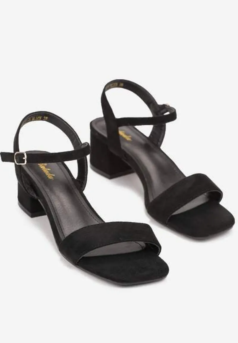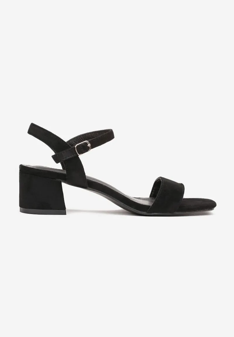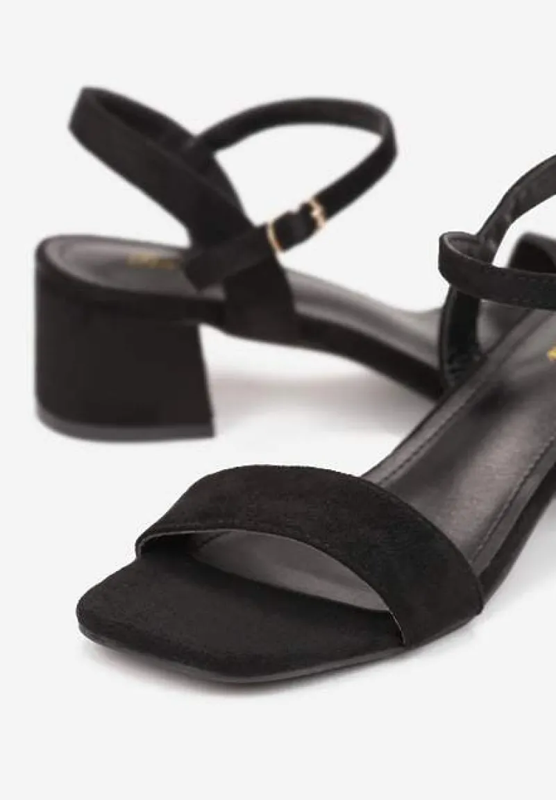 Czarne Sandały na Niskim Słupkowym Obcasie ze Sprzączką Vosanna
