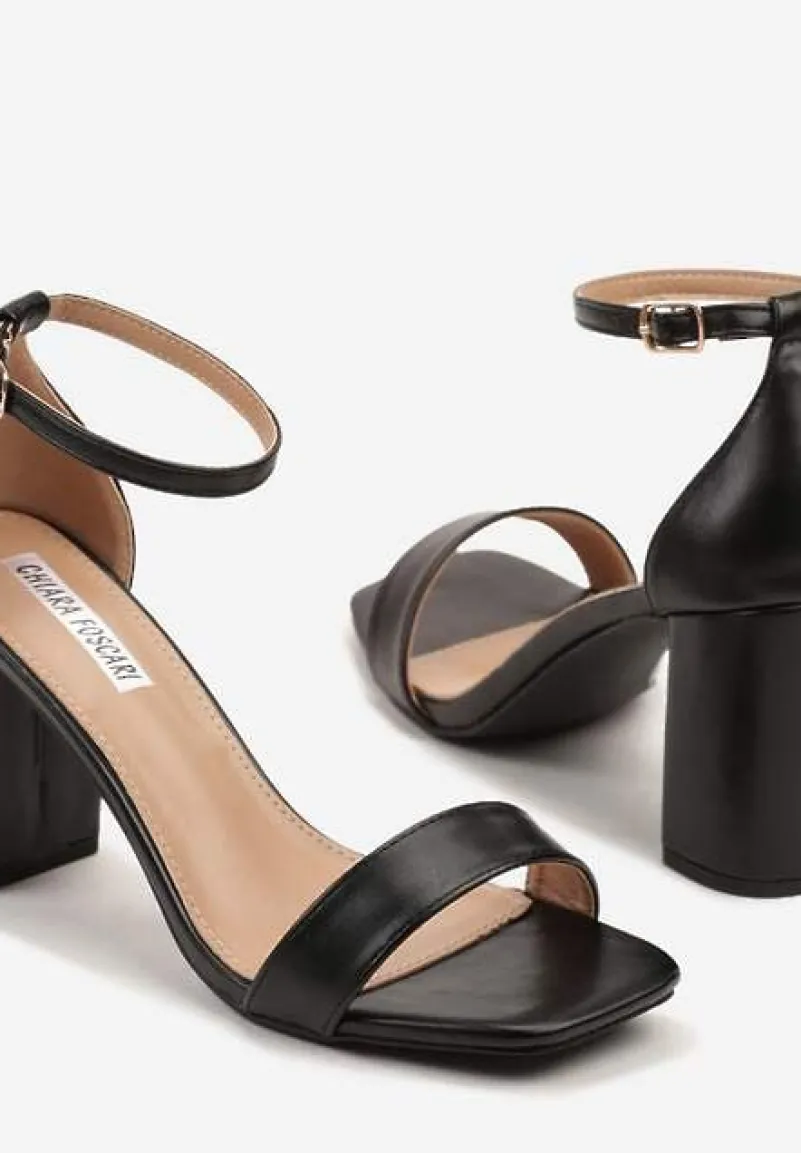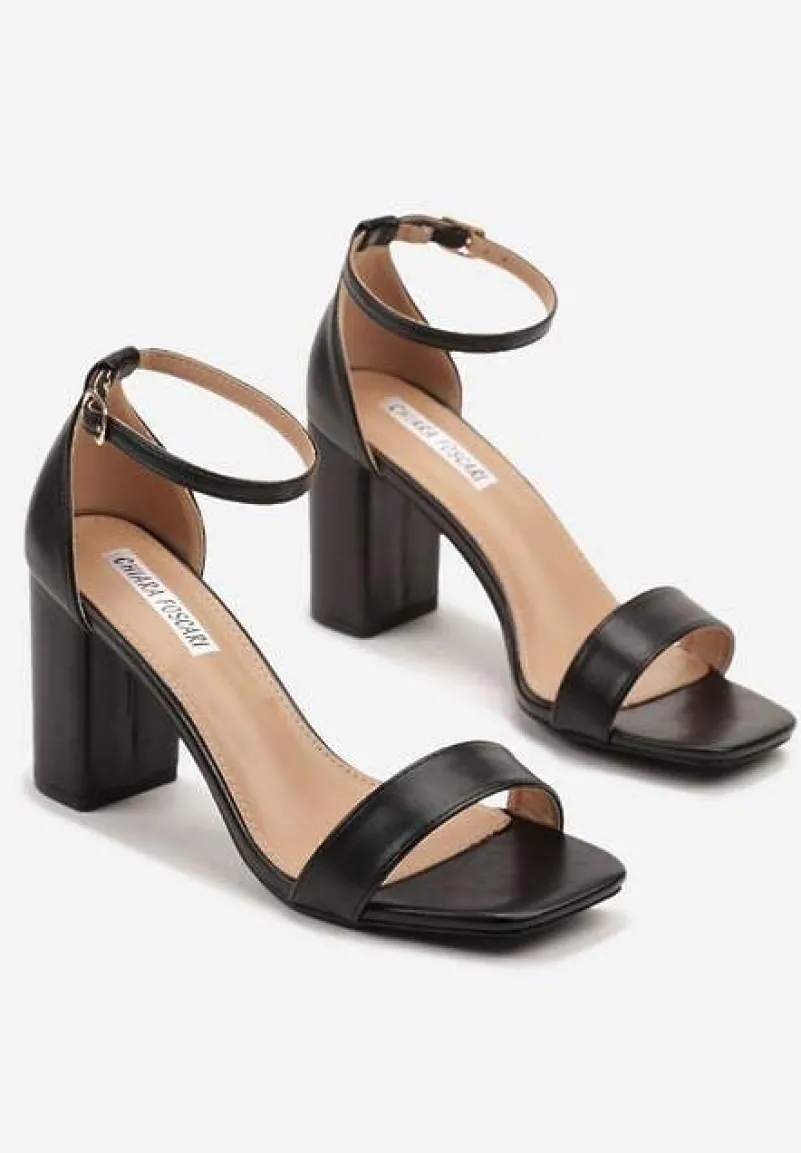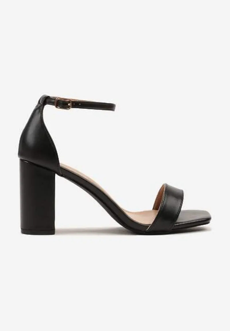 Czarne Sandały na Słupku Ozdobione Kwadratowym Noskiem Boroti