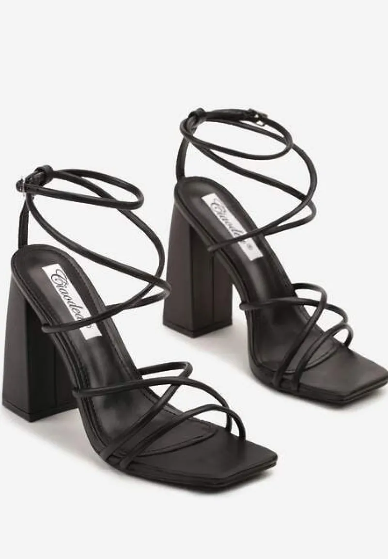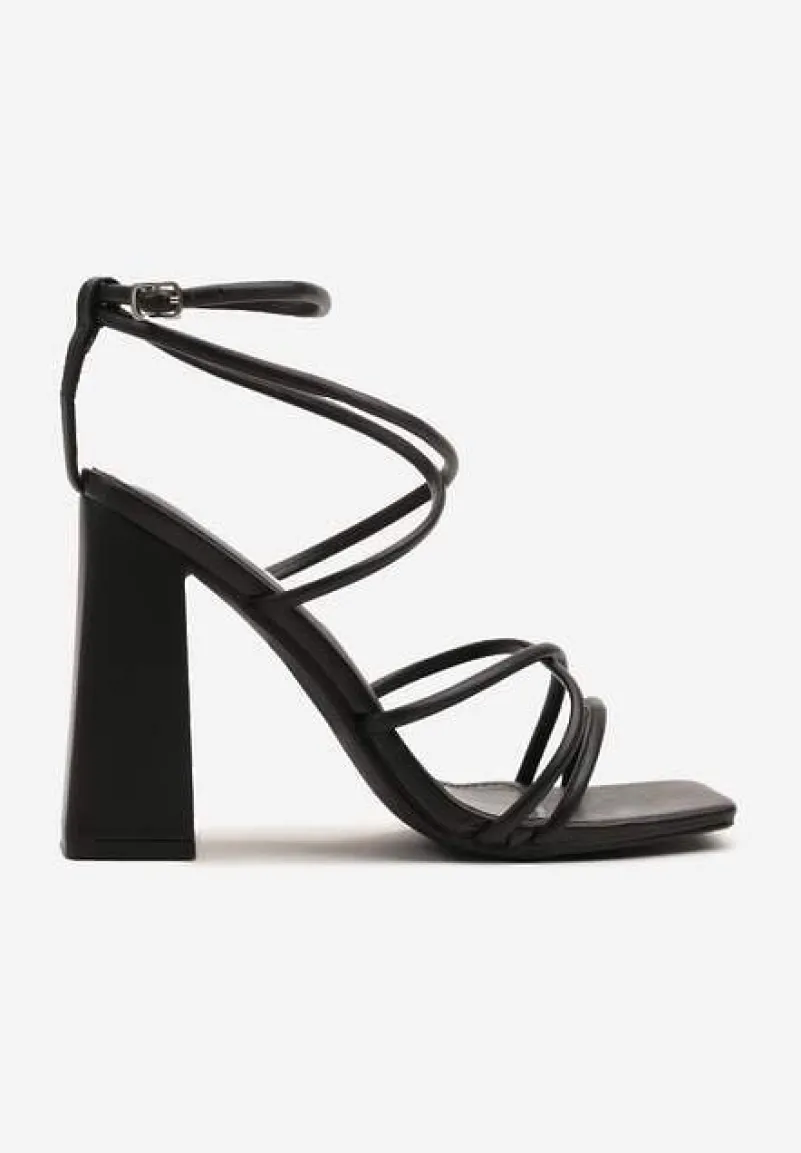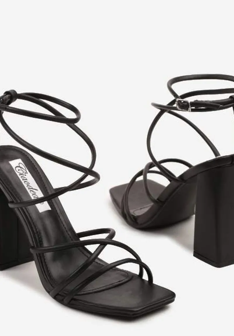 Czarne Sandały na Słupku Ozdobione Kwadratowym Noskiem Nilusca