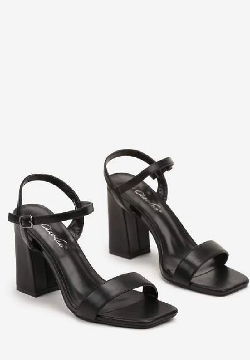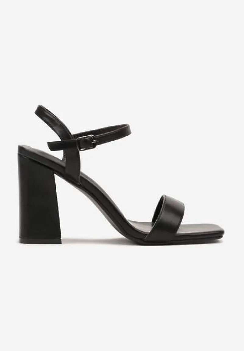 Czarne Sandały na Słupku Zapinane przy Kostce z Kwadratowym Noskiem Isevia