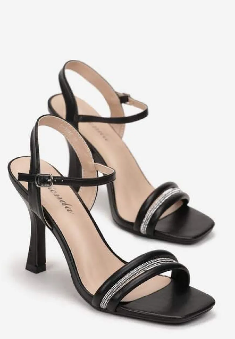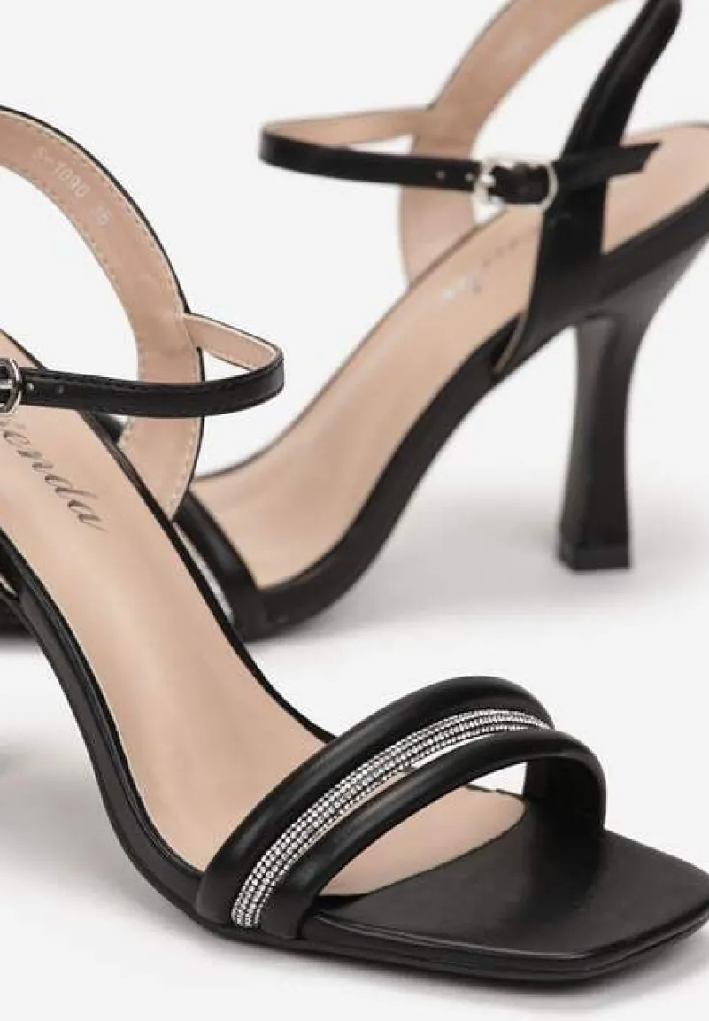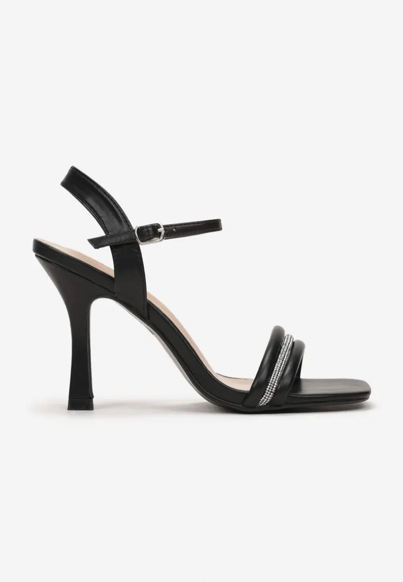 Czarne Sandały na Szpilce Ozdobione Cyrkoniami Aslima