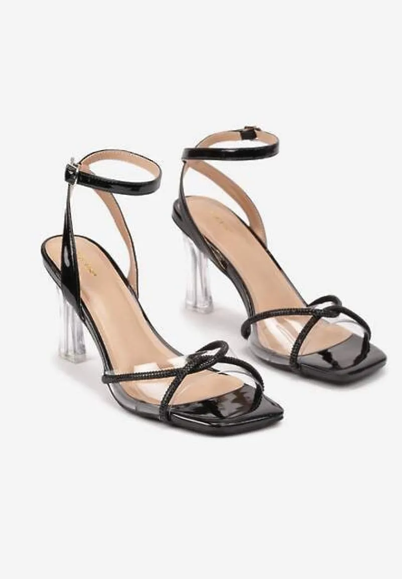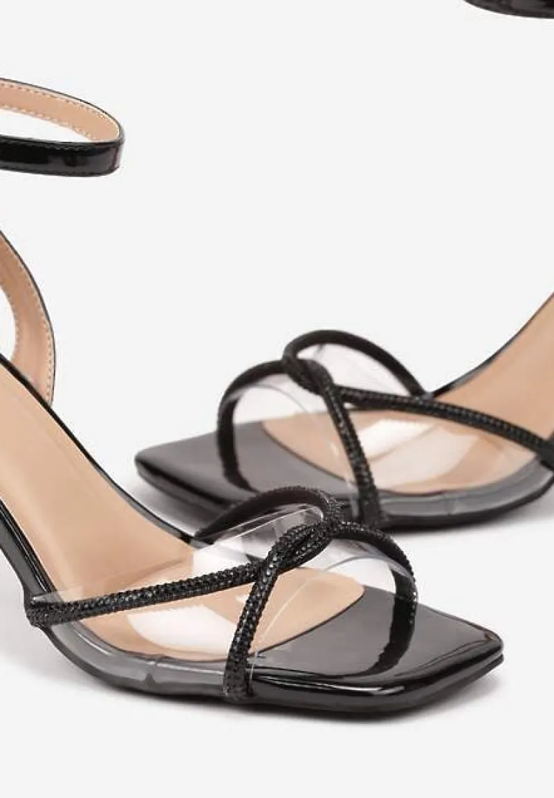 Czarne Sandały Vices na Transparentnym Słupku z Paskami z Cyroniami Nitasea