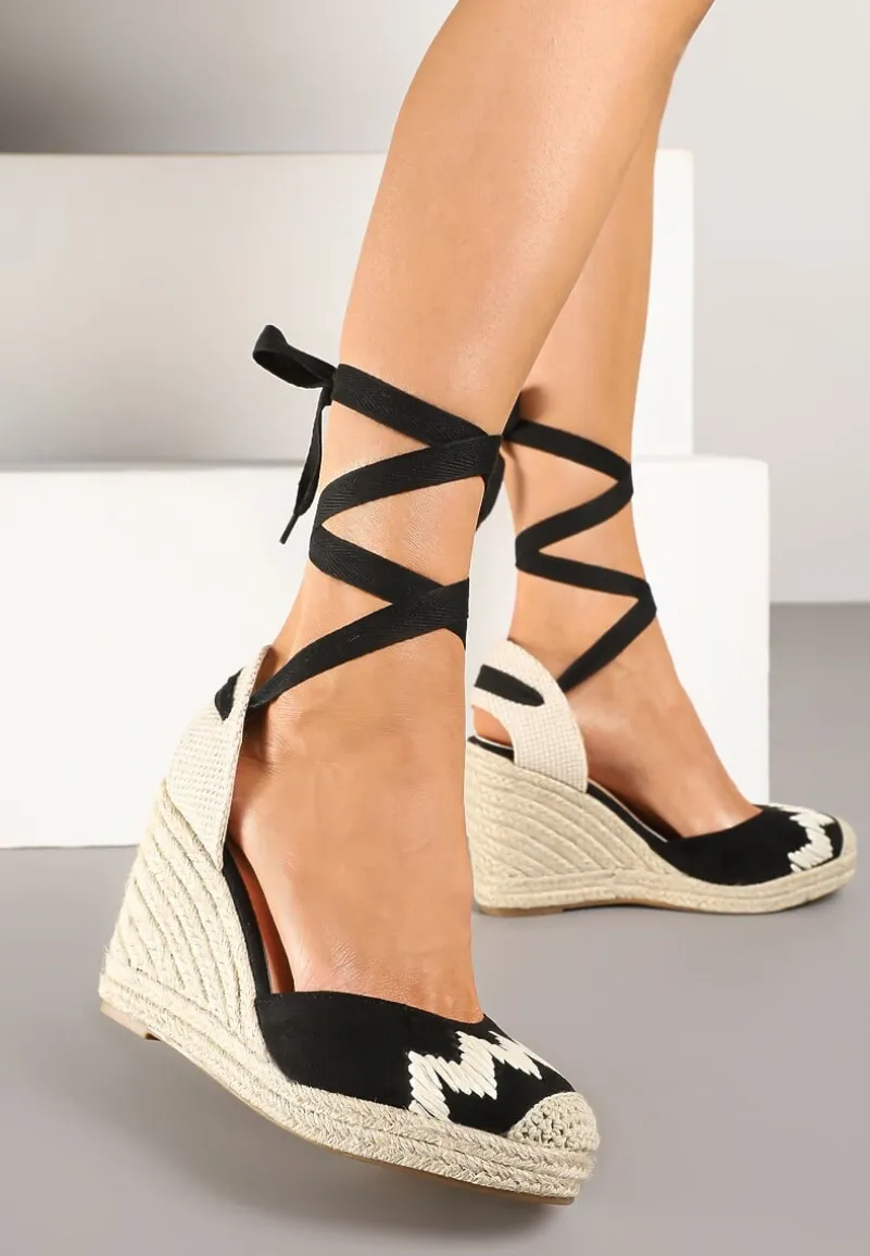 Sandały z Plecionką na Koturnie i Ozdobnym Wiązaniem to must-have w szafie każdej modnej kobiety. Osadzone na stabilnym koturnie, idealnie łączą wygodę z elegancją, a plecionka dodaje im wyjątkowego, letniego charakteru. Ozdobne wiązanie na kostce wprowadza nutę romantyzmu, a zamknięty nosek jest idealnym wyborem na bardziej formalne okazje. Stylizując je z lekką, zwiewną sukienką czy klasycznymi spodniami i elegancką bluzką, stworzysz zestaw, który zachwyci na każdej imprezie!