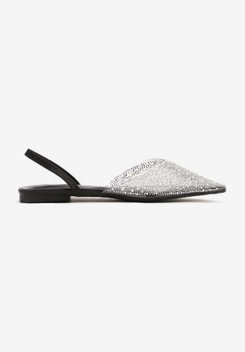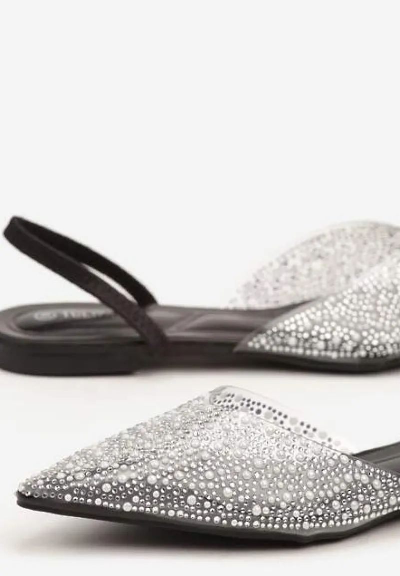 Czarne Sandały z Przezroczystą Cholewką Ozdobione Cyrkoniami Silevea