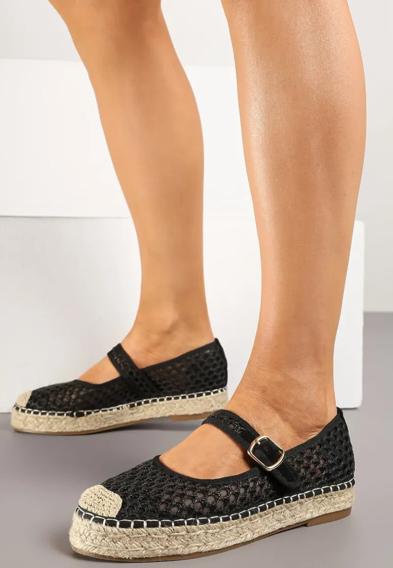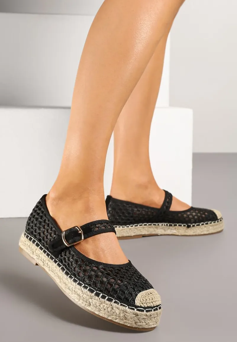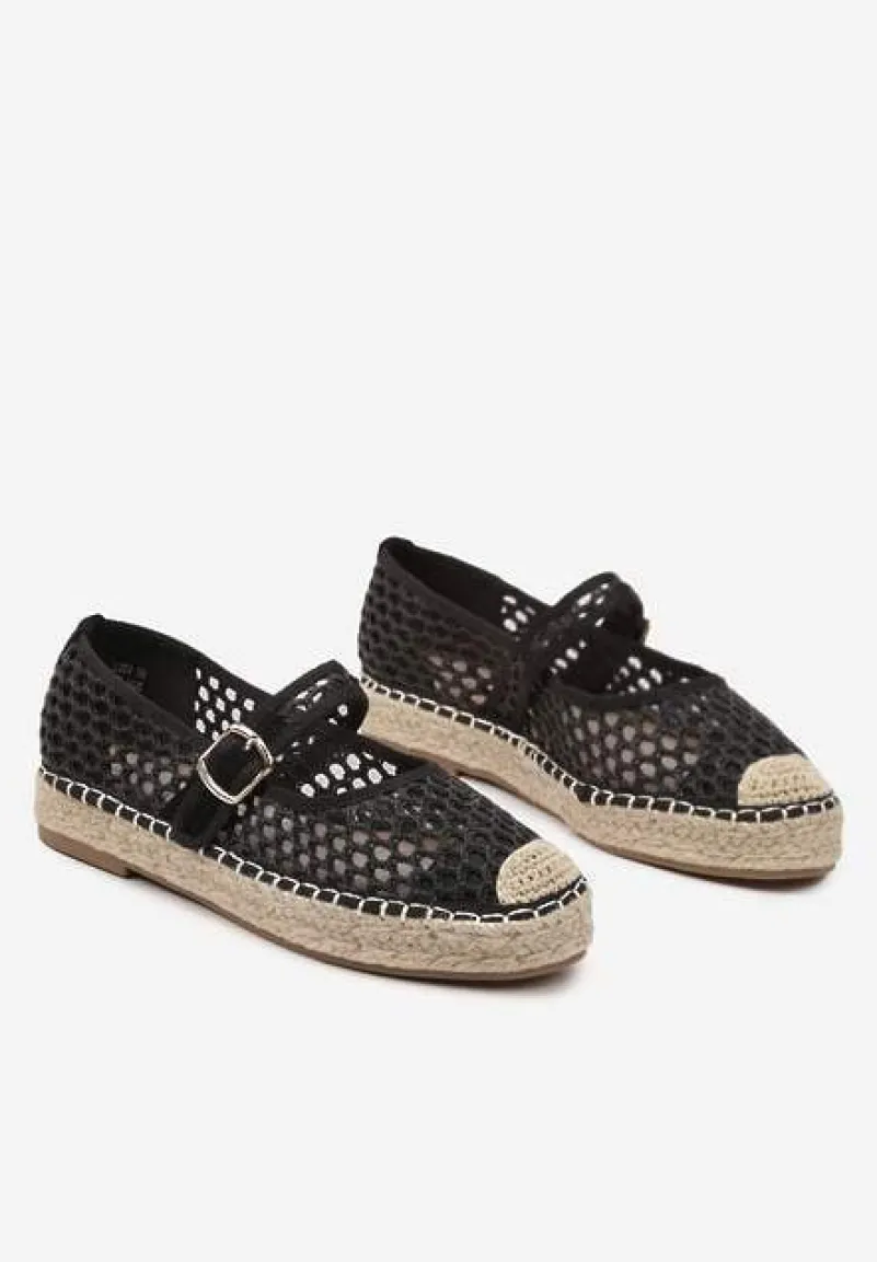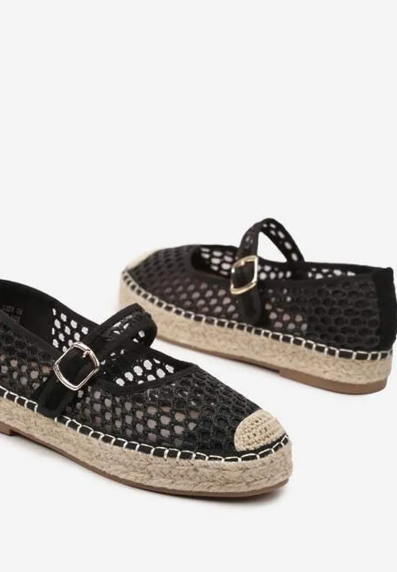 Siateczkowe Espadryle na Podeszwie z Juty Zapinane na Sprzączkę Geniffia – sprzączka dodaje elegancji, a pleciona podeszwa nadaje espadrylom lekkości i naturalnego charakteru.