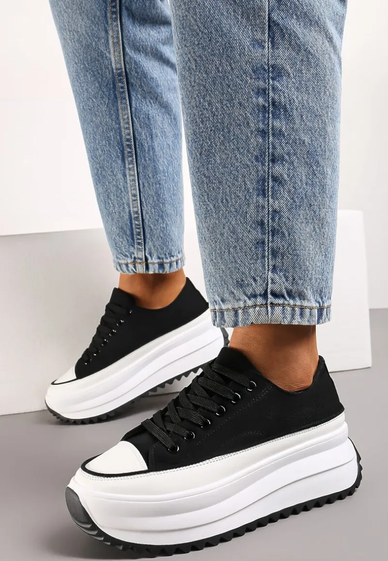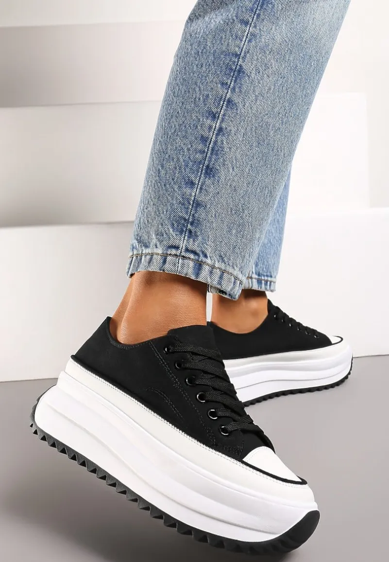 Sneakersy Trampki Przed Kostkę na Wysokiej Platformie z Ozdobnym Protektorem to obuwie, które podkreśli Twój miejski szyk! Platforma doda kilka centymetrów wzrostu i pewności siebie. Okrągły nosek oraz klasyczne sznurowanie pozwalają na doskonałe dopasowanie do stopy, zarówno podczas dynamicznego dnia, jak i na wieczorne wyjście. Stylizacja? Spróbuj z sukienką midi i ramoneską dla niebanalnego looku lub z jeansami i oversize’owym swetrem, aby stworzyć look pełen nonszalancji!