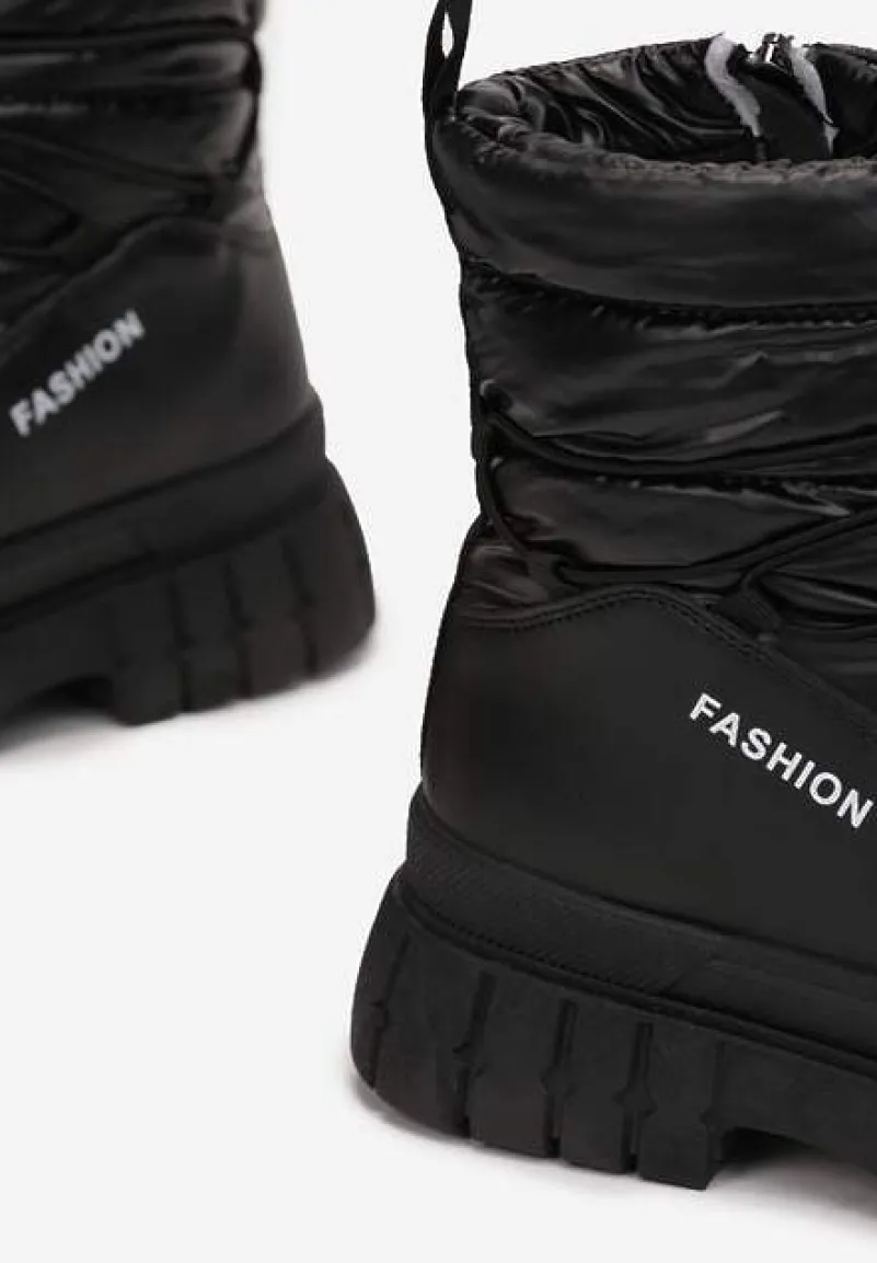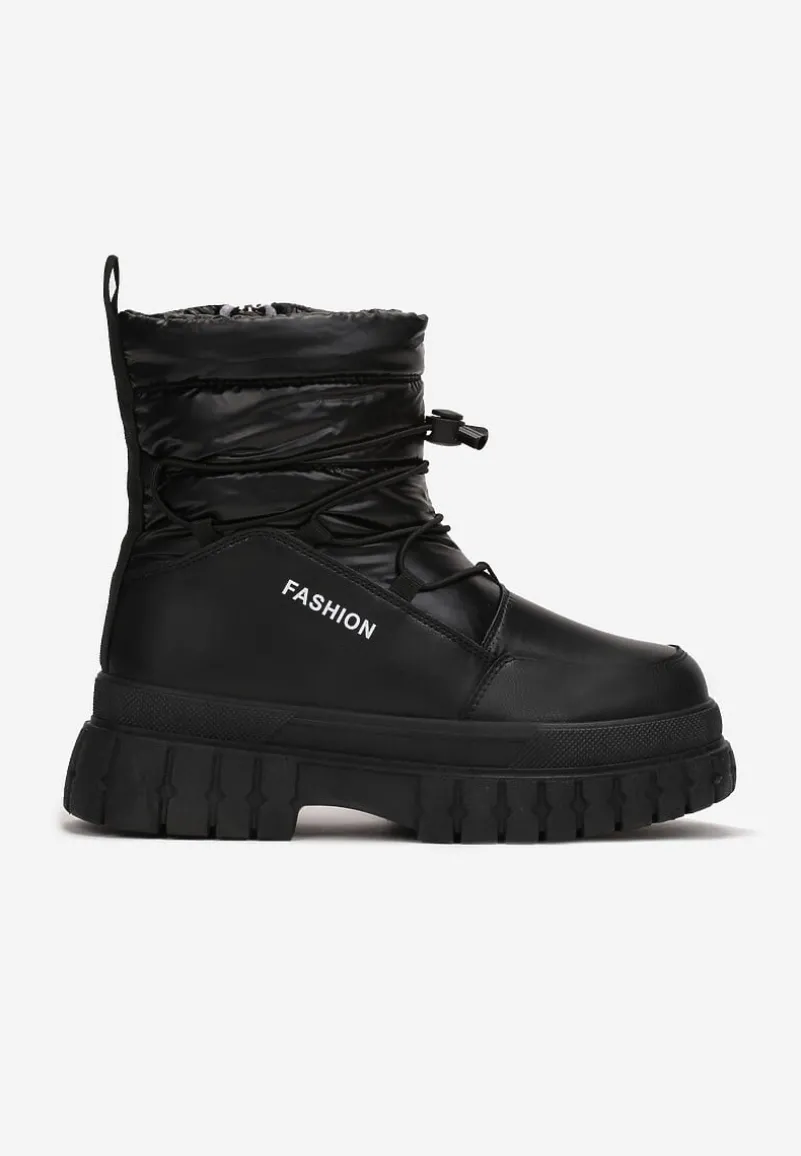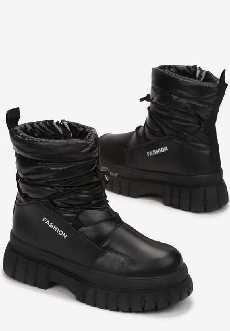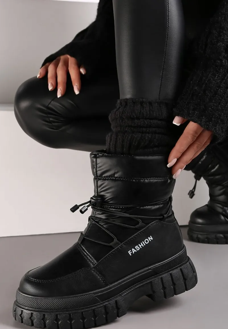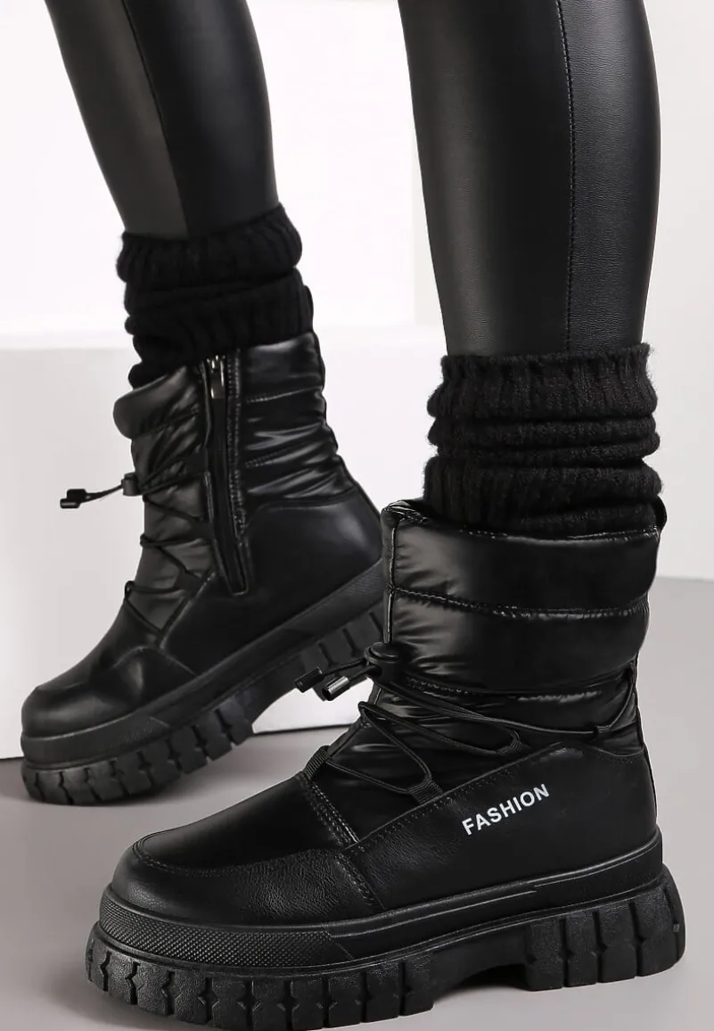Śniegowce Flagreat w casualowym stylu, zapinane na zamek błyskawiczny. Model wykonany z ekoskóry oraz materiału tekstylnego w górnej części cholewki. Ocieplenie zapewnia koc obuwniczy. Noski okrągłe. Z przodu ozdobne gumki ze stoperem. Buty osadzone są na grubej podeszwie z protektorem. Uwaga, zaniżona rozmiarówka, kup większe. Modne śniegowce na zimę będą towarzyszyć Ci w codziennych sytuacjach. Dobrze prezentują się z kurtką parką i spodniami cargo.