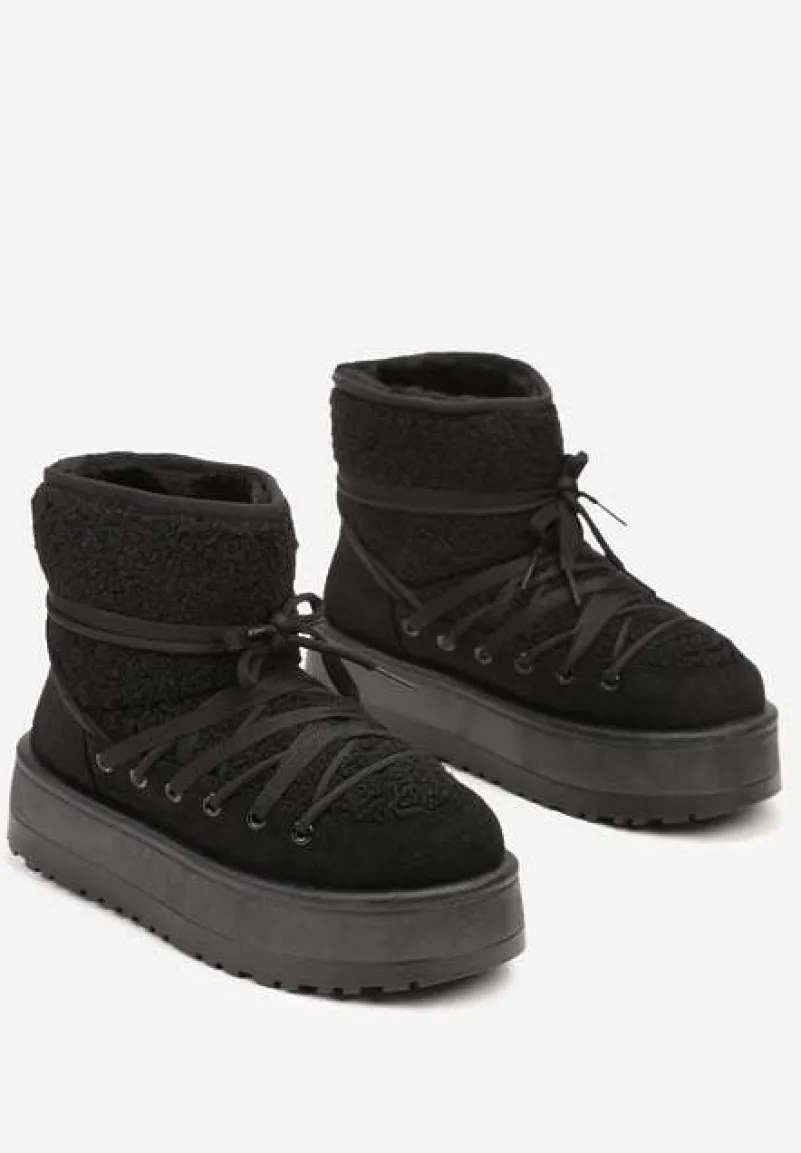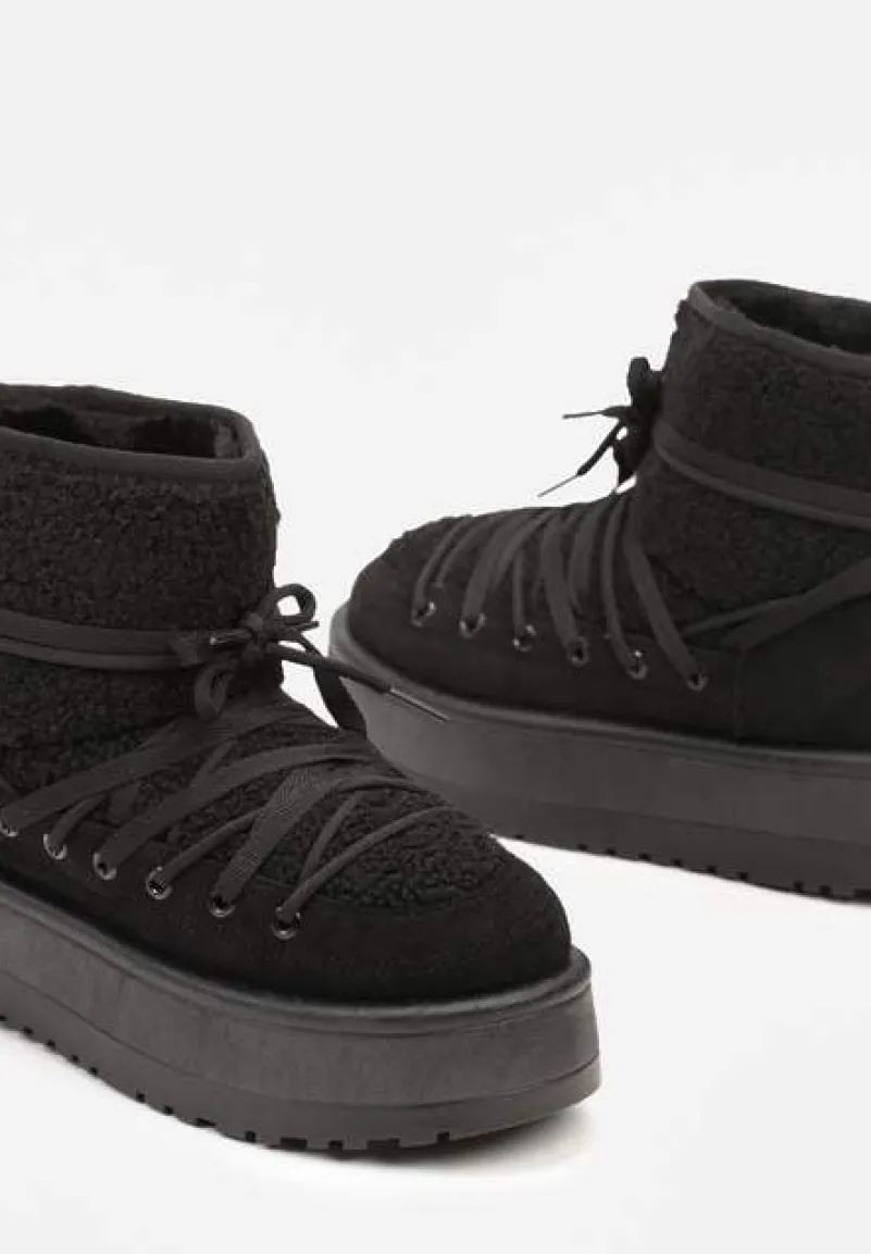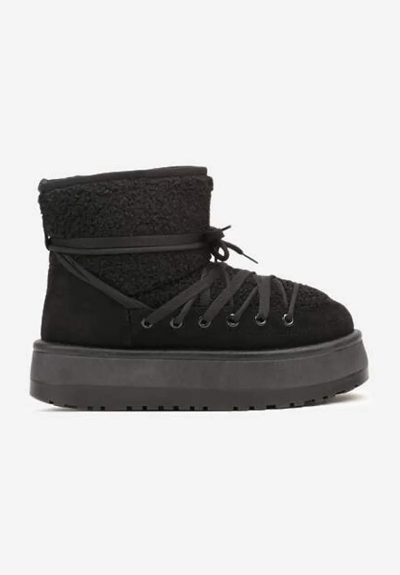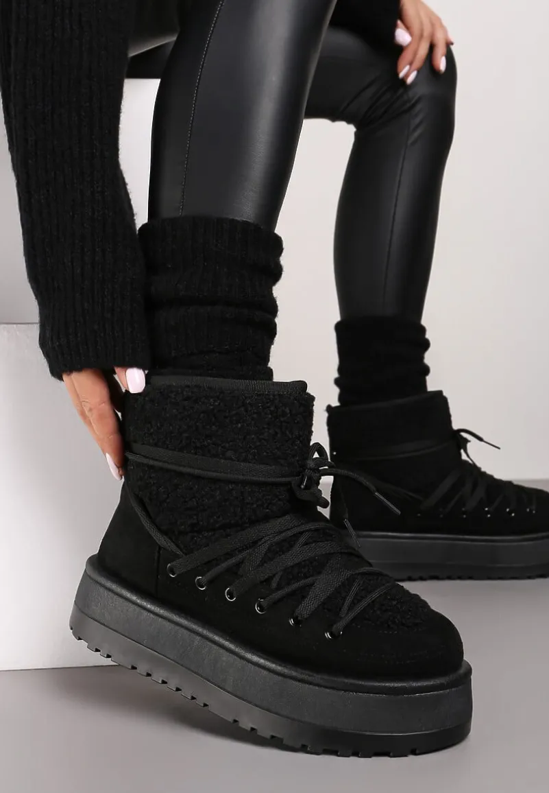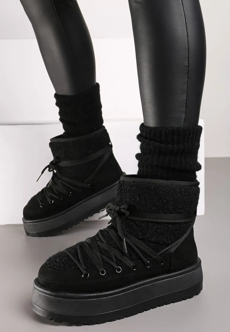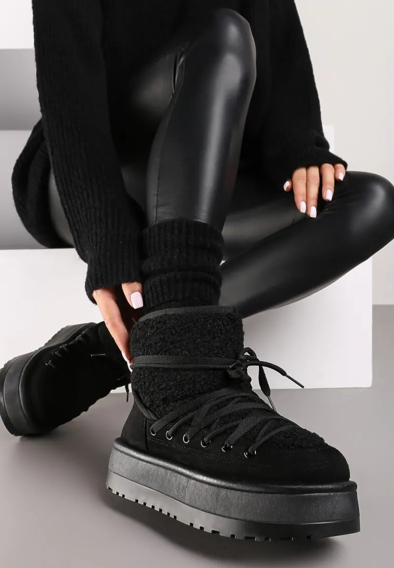 Śniegowce Terilani to Twoi nowi zimowi towarzysze – łączą w sobie modny design. Rozbudowany, obcas-platforma zapewnia stabilność i dodaje centymetrów wzrostu. Okrągły nosek i sznurowanie to praktyczne rozwiązania, które dopełniają stylowy wygląd. Podkreśl swój zimowy look, łącząc je z oversizowymi swetrami i legginsami albo załóż do puchowej kurtki i dopasowanych jeansów dla miejskiego, casualowego looku!