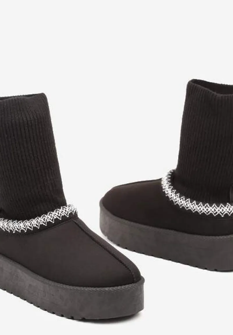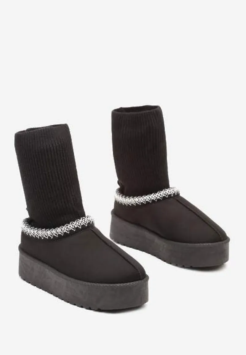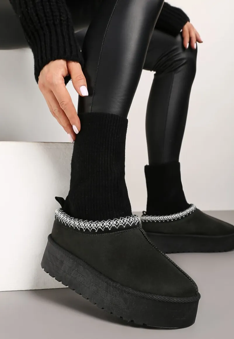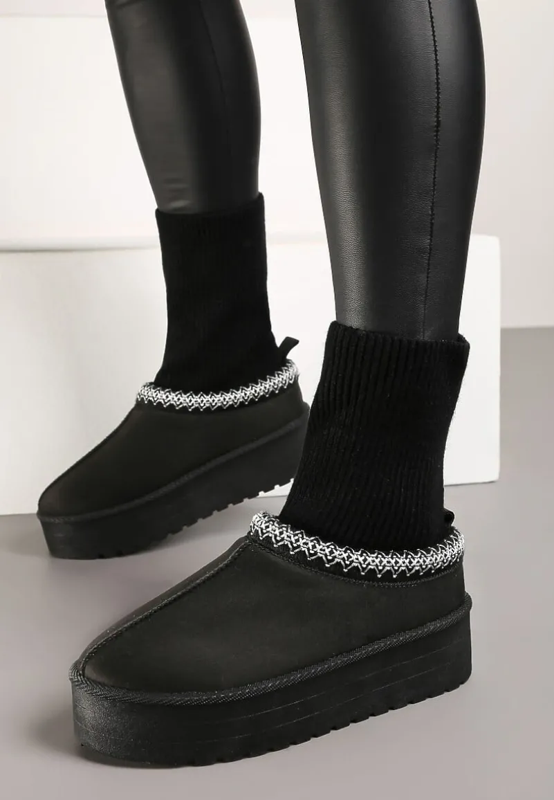 Śniegowce Tinnacilia to absolutny must-have dla kobiet, które uwielbiają połączenie mody i funkcjonalności. Stabilny obcas typu platforma gwarantuje komfort noszenia, a futrzana wyściółka chroni przed zimnem. Skarpetkową cholewkę zdobią finezyjne haftowane obszycia, dodając butom unikalnego charakteru. Zaokrąglony nosek i wsuwany fason ułatwiają zakładanie, a wszechstronny design pasuje do wielu stylizacji. Na co dzień noś je z jeansami i oversizowym swetrem, a na wieczorne wyjście zestaw je z dzianinową sukienką, aby stworzyć niebanalny i stylowy zimowy zestaw.