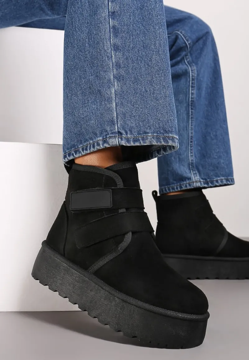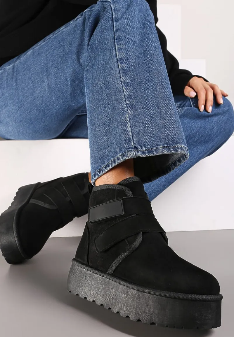 Śniegowce Tarimelle to nie tylko gwarancja ciepła i komfortu w mroźne dni, ale również szczypta miejskiego szyku. Masywna platforma doda centymetrów i podkreśli dynamiczny charakter stylizacji, a wygodne zapięcie na rzep ułatwi szybkie zakładanie. Zaokrąglony nosek butów nadaje im uniwersalności, pasując do wielu outfitów. Te botki będą idealne na spacer po parku lub zimowy wypad na miasto — połącz je z modnym puchowym płaszczem i jeansami, a wieczorem stwórz kontrast z elegancką, oversize’ową marynarką, aby zaskoczyć wszystkich niebanalnym połączeniem!