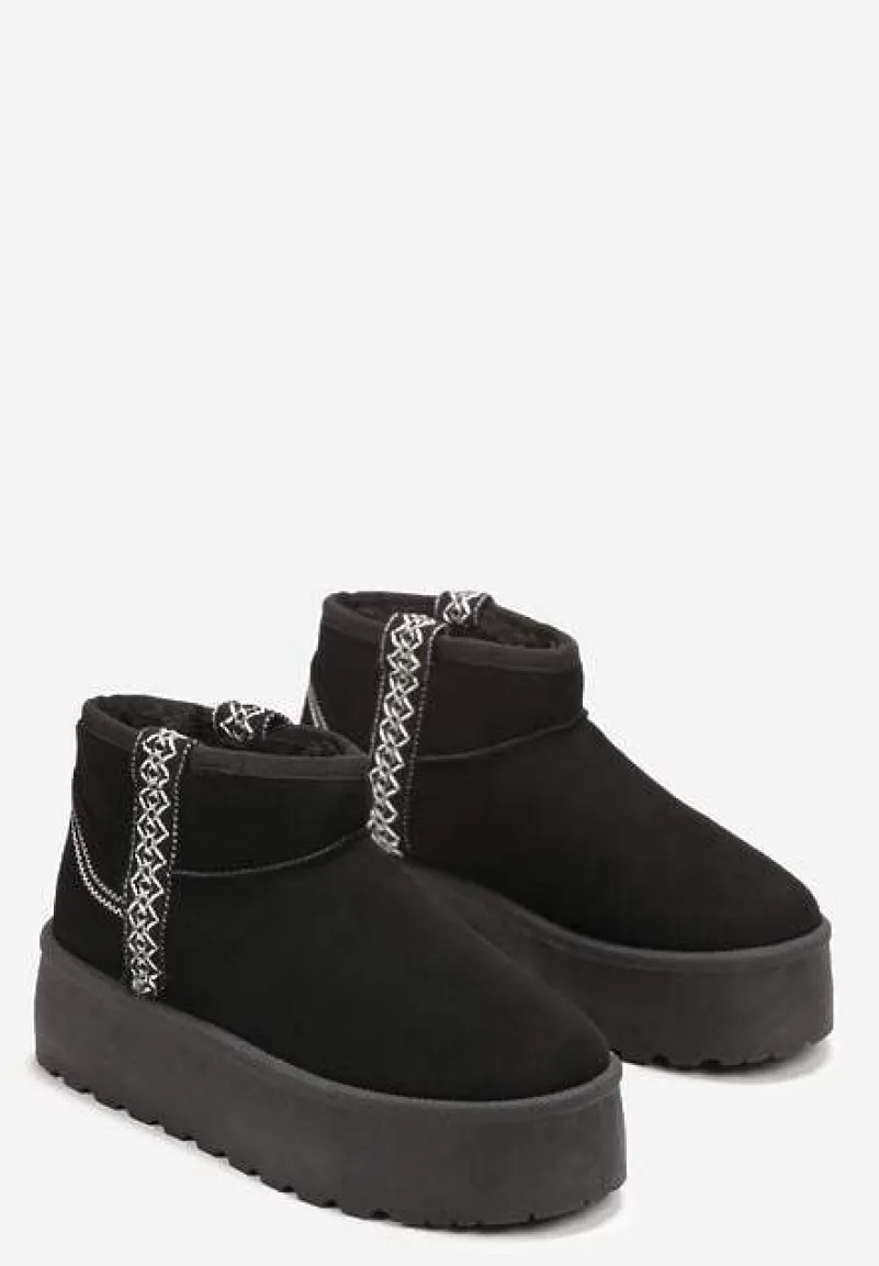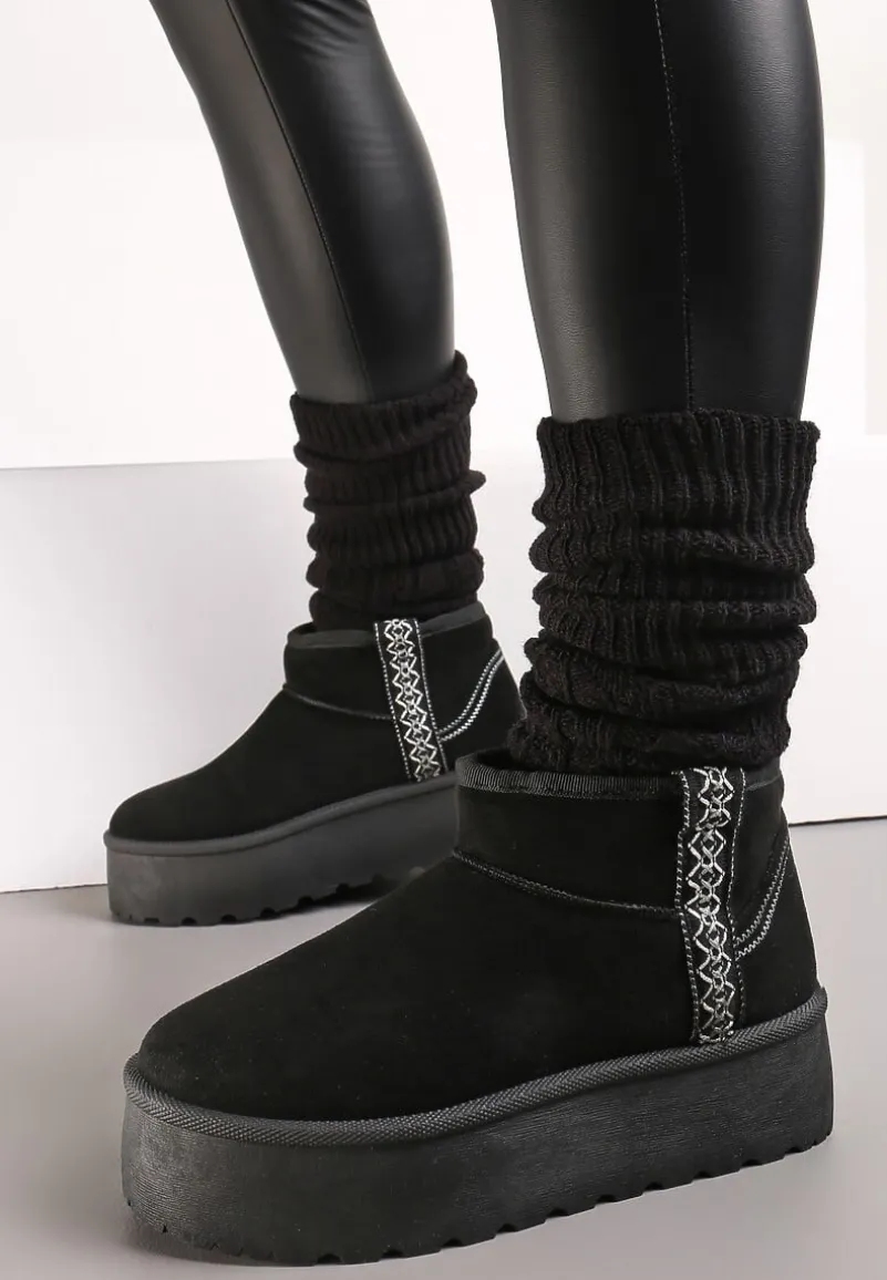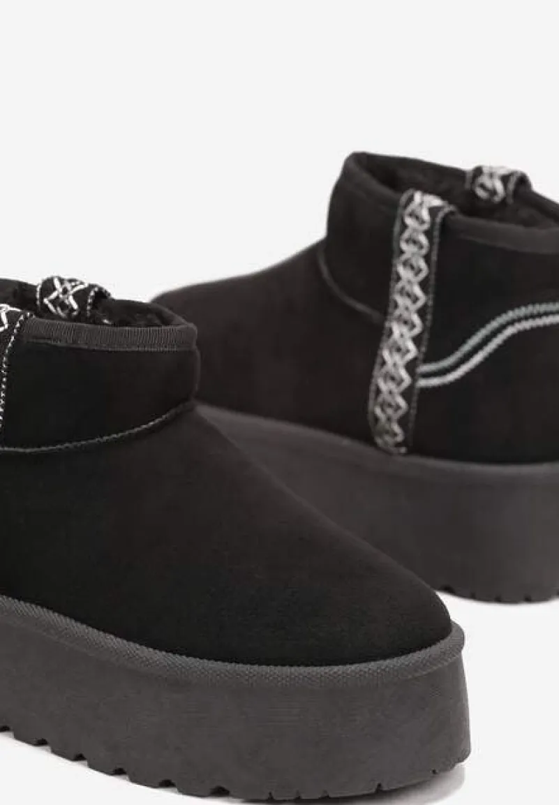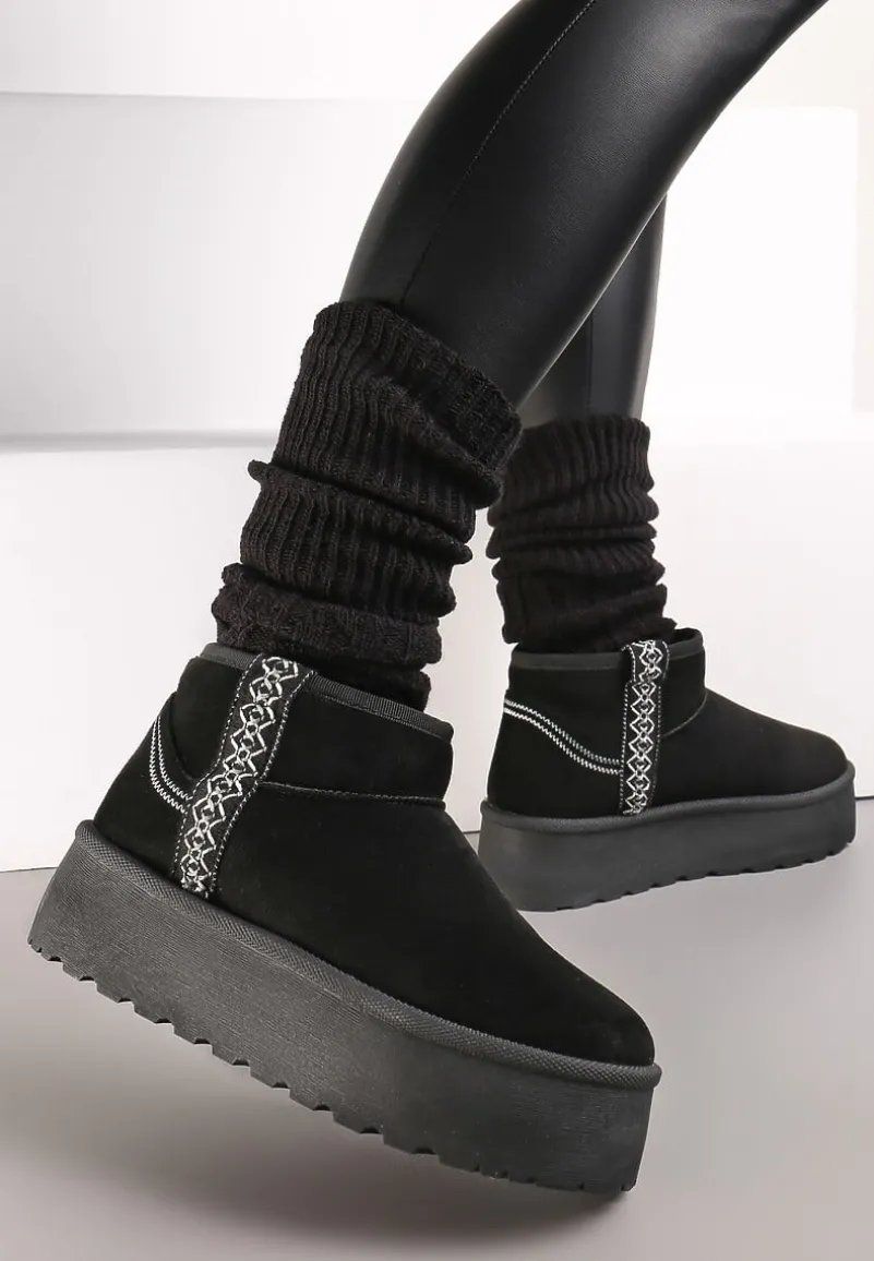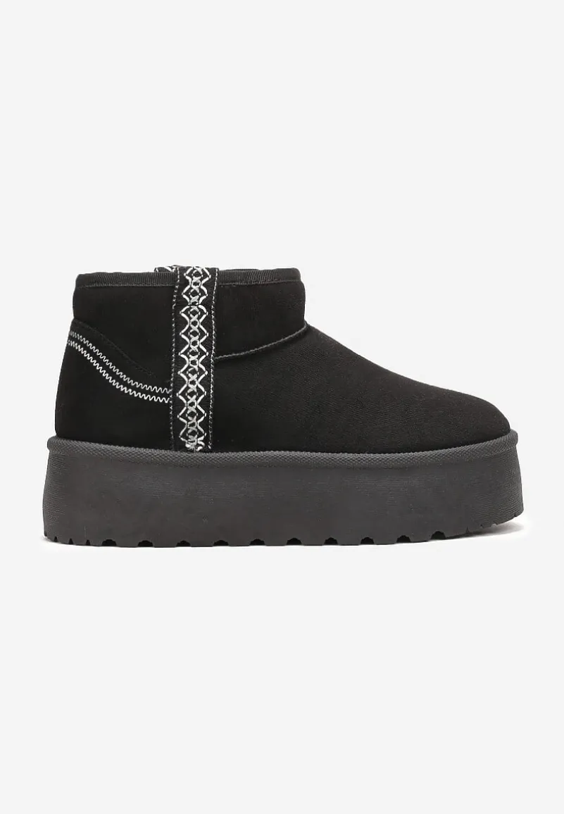 Śniegowce Veonli — na wsuwanie, ocieplone, w jednolitym kolorze. Na boku ozdobny pasek we wzory.