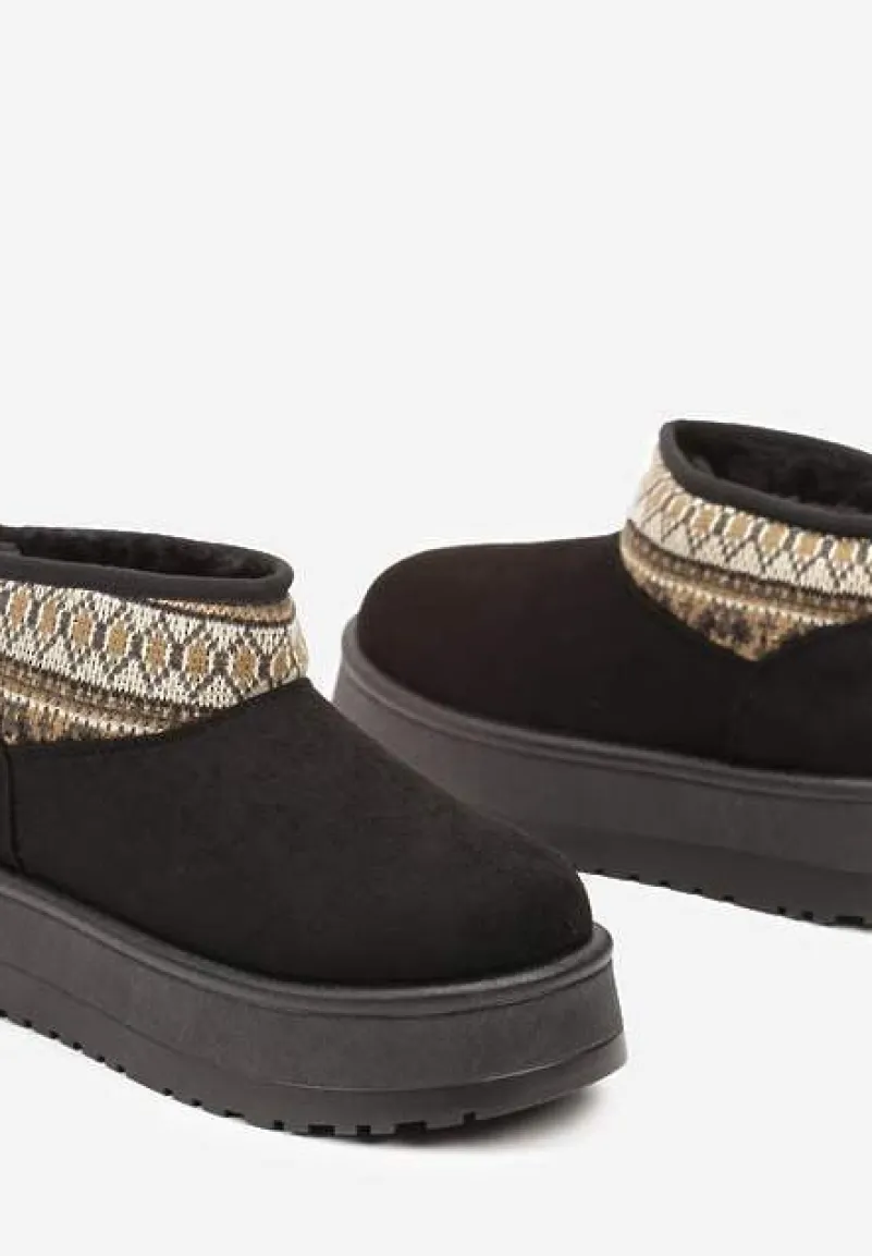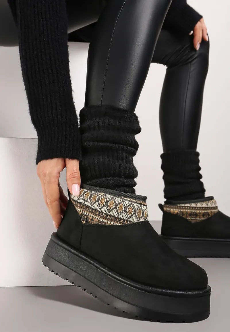 Podkreśl swoją osobowość i styl dzięki wyrazistym śniegowcom na efektownej platformie Sinalora. Gruba podeszwa subtelnie wysmukli Twoją sylwetkę, a ocieplana wyściółka zagwarantuje komfort nawet w chłodniejsze dni. Zaokrąglony nosek buta zapewnia swobodę, a brak zbędnych zapięć ułatwi zakładanie. Wzorzysta wstawka to detal, który sprawi, że nie przejdziesz niezauważona. Śniegowce świetnie skomponują się z jeansami i obszernym swetrem na co dzień lub z eleganckim, zimowym płaszczem dla bardziej formalnego looku. Z tymi butami każdy krok to synonim stylu i pewności siebie!