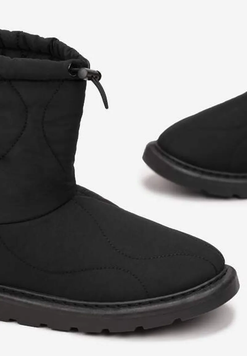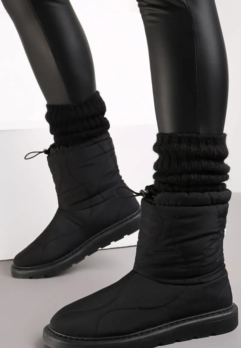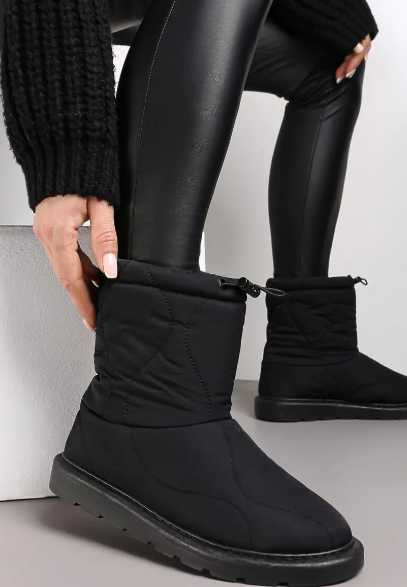 Śniegowce Lessela wykonane z materiału tekstylnego. Cholewka sięga za kostkę, dekorowana pikowaniem o nieregularnym kształcie. Na górze ściągane stoperem, co pozwala dopasować obwód to Twoich wymiarów. Osadzone na płaskiej podeszwie. Mocno ocieplane kocem obuwniczym. Śniegowce Lessela to niezawodny element w mroźne, zimowe dni!