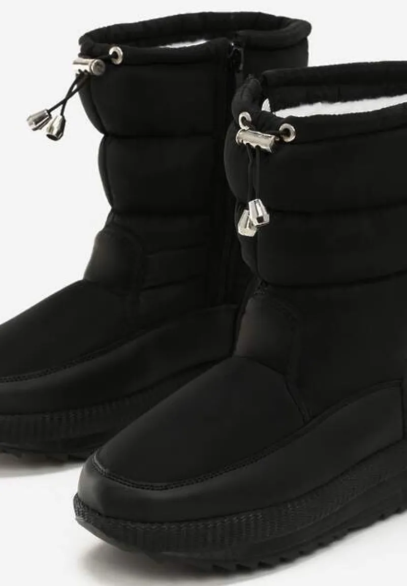 Śniegowce Aramantha z pikowaną cholewką za kostkę. Cholewka wykończona troczkiem ze stoperem, dzięki czemu możesz regulować jej szerokość. Zapinane na zamek błyskawiczny, umiejscowiony po wewnętrznej stronie. Gruba platforma, wykończona solidnym protektorem. Model ocieplony. Zachowane w minimalistycznej, nieco futurystycznej stylistyce, będą ciekawym dodatkiem do codziennych stylizacji.