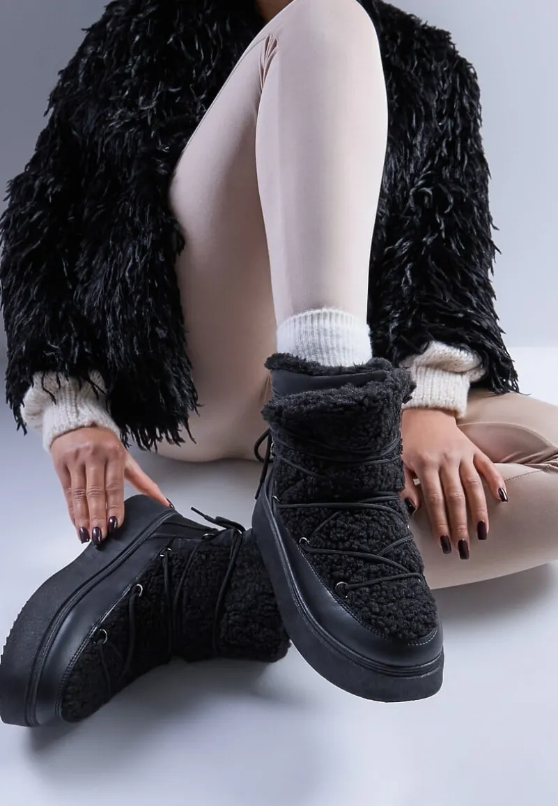 Odkryj Śniegowce Vices na Platformie – Twoich nowych, zimowych sprzymierzeńców. Futerko sprawdzi się idealnie jako ocieplenie, a platforma zabezpieczy przed chłodem. Idealne do casualowych stylizacji z długim płaszczem i dzianinowym swetrem, jak też do bardziej eleganckich zestawów z dopasowaną spódnicą i grubym kardiganem. Zasznurowane i gotowe – powitaj zimę w wielkim stylu!