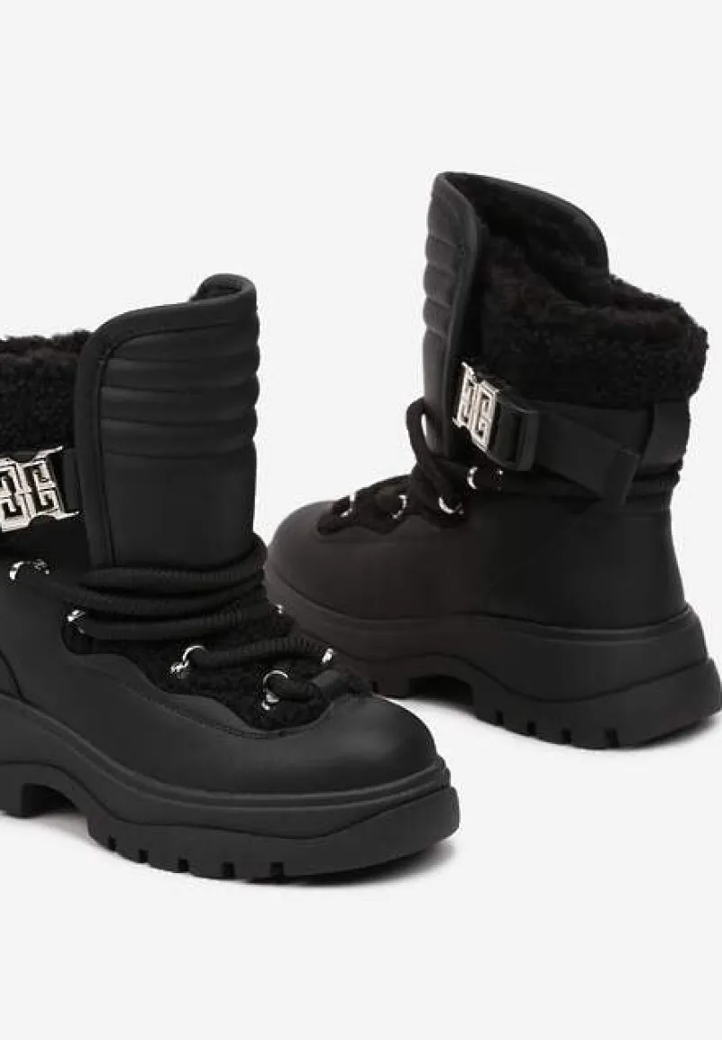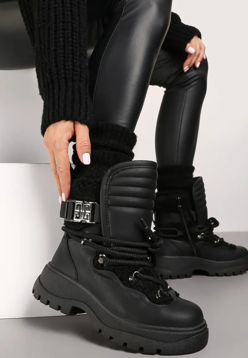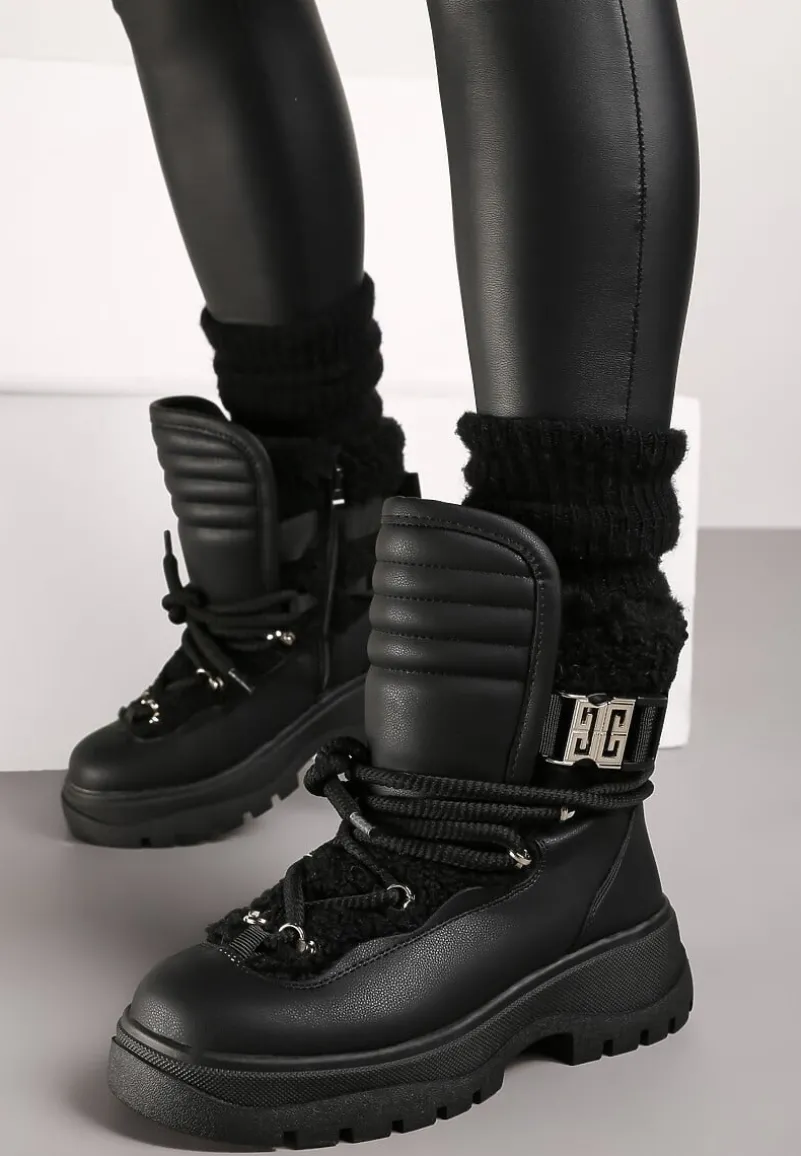 Śniegowce Reanwenna to doskonałe połączenie stylu i funkcjonalności, idealne na zimowe dni. Grube sznurowanie oraz futrzana cholewka z klamrą dodają im niepowtarzalnego charakteru, a podeszwa na platformie zapewnia pewny krok. Dzięki ociepleniu, te buty sprawdzą się zarówno na codzienne miejskie eskapady, jak i podczas wieczornych wyjść, np. z ciepłym, dzianinowym swetrem i jeansami. Wersja formalna? Połącz je z eleganckim płaszczem i wełnianym szalem, aby wyglądać stylowo i z klasą.