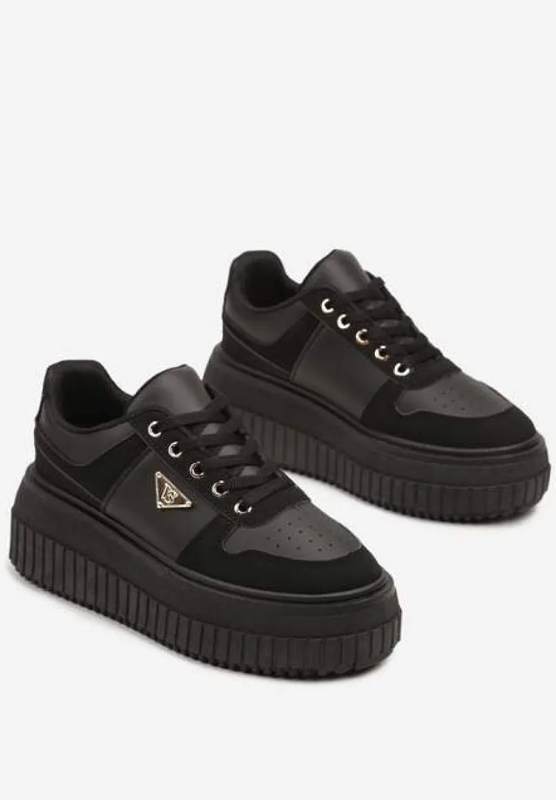 Raviri Sneakersy na tłoczonej platformie to must-have. Platforma doskonale wpisuje się w miejski styl, a zaokrąglony nosek buta dodaje im uniwersalnego charakteru. Nietuzinkowe sznurowanie zapewnia unikalny wygląd, a subtelne zdobienie w kształcie trójkąta podkreśla ich designerski charakter. Załóż je do swobodnych, miejskich looków z boyfriend jeansami oraz t-shirt, albo zestaw z eleganckim plisowaną spódniczką i marynarką, aby zrobić wrażenie podczas bardziej oficjalnych wyjść.