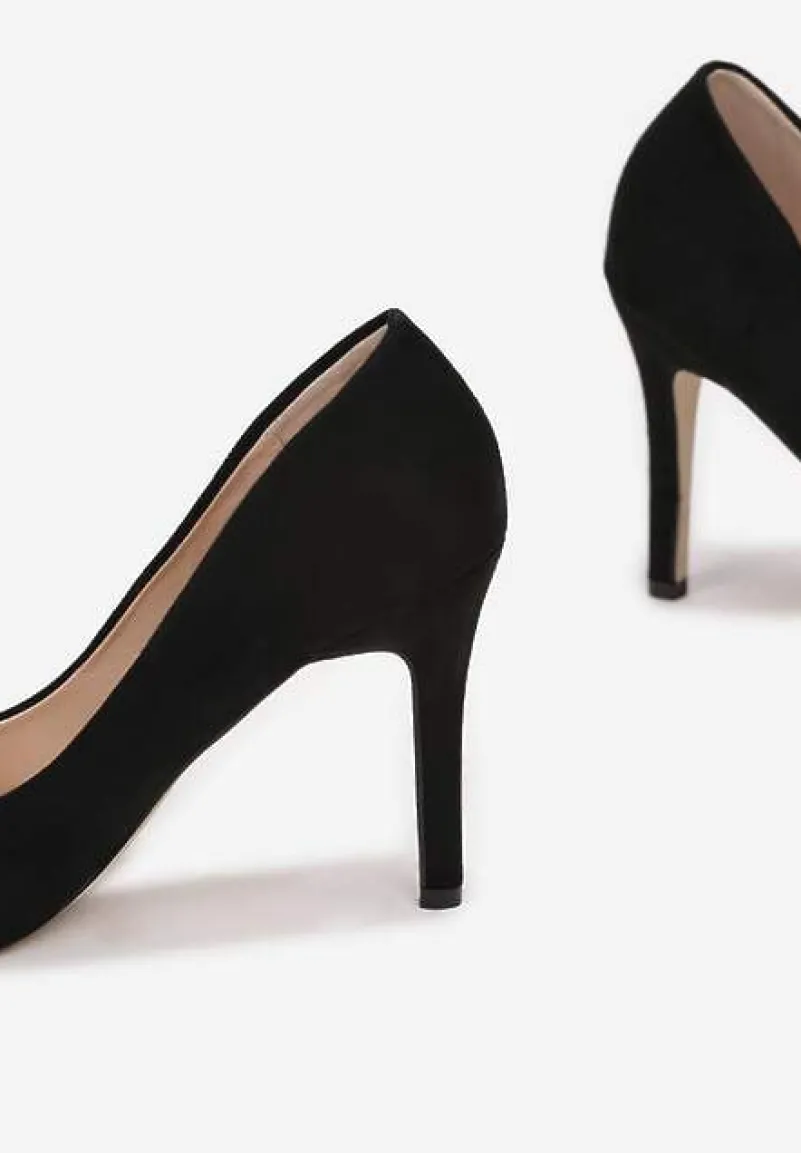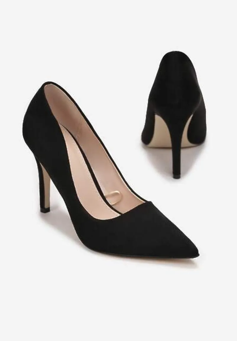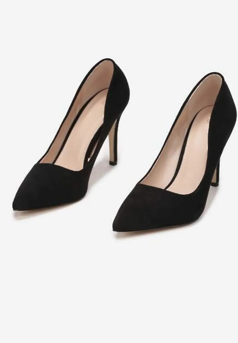 Szpilki Hekippe wsuwane, z noskiem w kształcie szpica oraz cholewką kończącą się przed kostką. Klasyczny, ponadczasowy fason. Osadzone na szpilce. Wykonane z gładkiego ekozamszu, wkładka z ekoskóry. Szpilki Hekippe pokochają wielbicielki prostych i eleganckich fasonów.