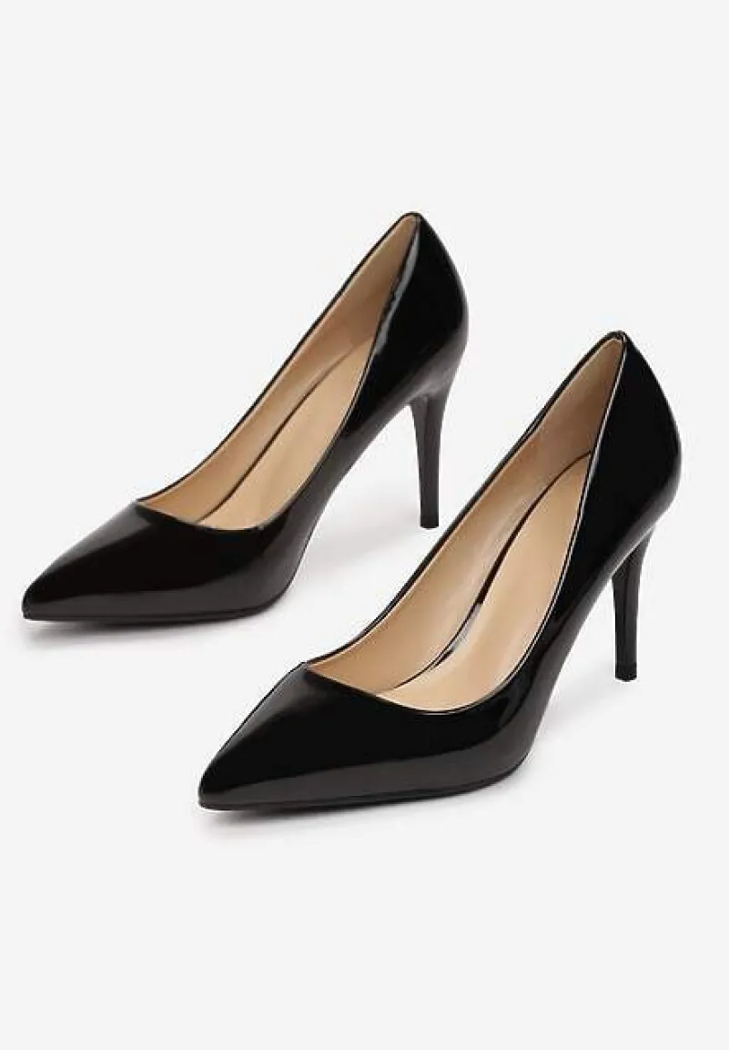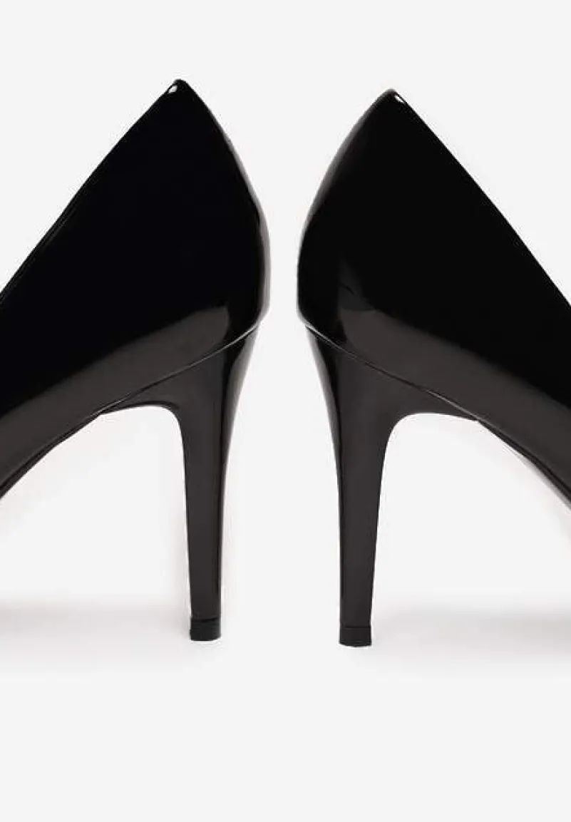 Szpilki Helireanes wsuwane, na wysokim, cienkim obcasie. Wykonane z pięknie lakierowanej ekoskóry. Szpiczasty nosek lekko wysmukla sylwetkę. Dodadzą Twojej stylizacji zmysłowości i kobiecości, czarująco wyglądają np. w duecie z taliowanym kombinezonem albo sukienką z pianki.