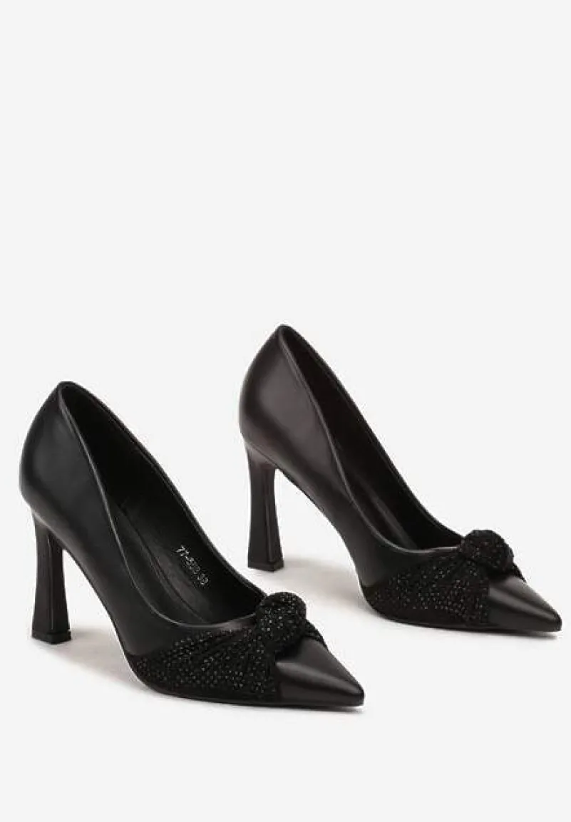 Szpilki Virimae to kwintesencja elegancji z nutką ekstrawagancji. Obcas typu klepsydra zapewnia stabilne wsparcie i jednocześnie jest gwarancją szyku. Misterny cyrkonowy węzeł na nosku dodaje nie tylko uroku, ale i niepowtarzalnego charakteru każdej stylizacji. Załóż te ponadczasowe buty do eleganckiej ołówkowej spódnicy i jedwabnej bluzki do pracy w biurze, albo wyeksponuj swoje nogi, łącząc je z małą czarną i zachwyć wszystkich na wieczorowym przyjęciu.
