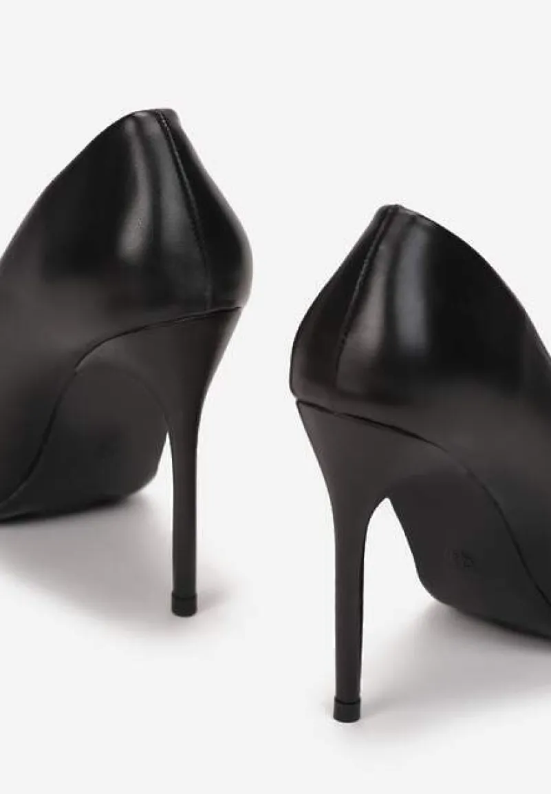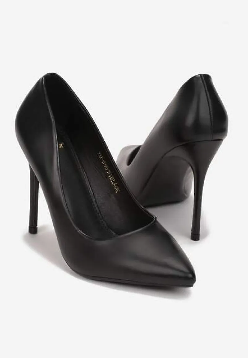 Szpilki Xelis ze szpiczastym noskiem, który wysmukli stopę. Na wysokiej, powleczonej szpilce. Wykonane z metalicznej ekoskóry, dzięki czemu przyciągają uwagę. Wkładka z gładkiego materiału skóropodobnego. Wsuwane, dobrze leżą na wąskiej stopie. Pasują do sukienek koktajlowych, eleganckich kombinezonów i kompletów ze spódnicą.
