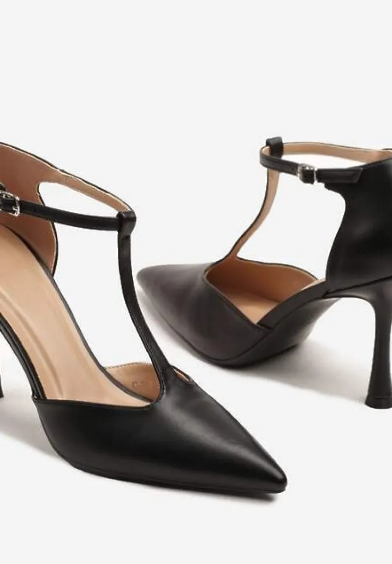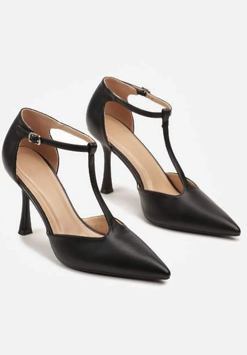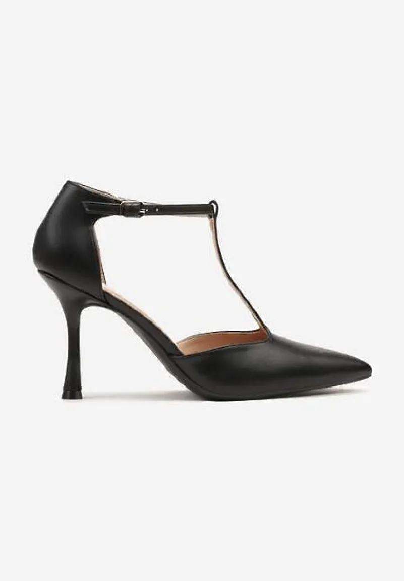 Oryginalne szpilki na wesele lub do pracy. Wyróżnia je klepsydrowy obcas i pionowy paseczek.